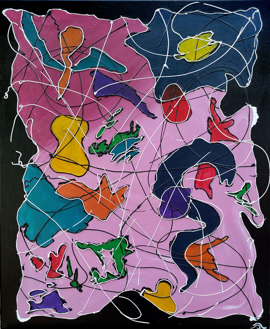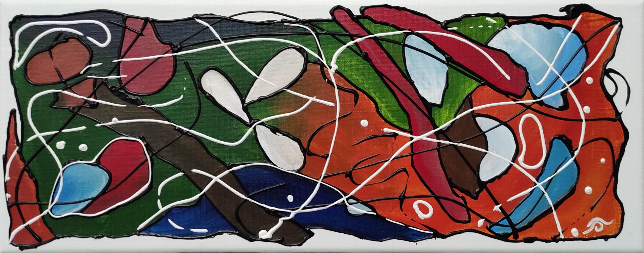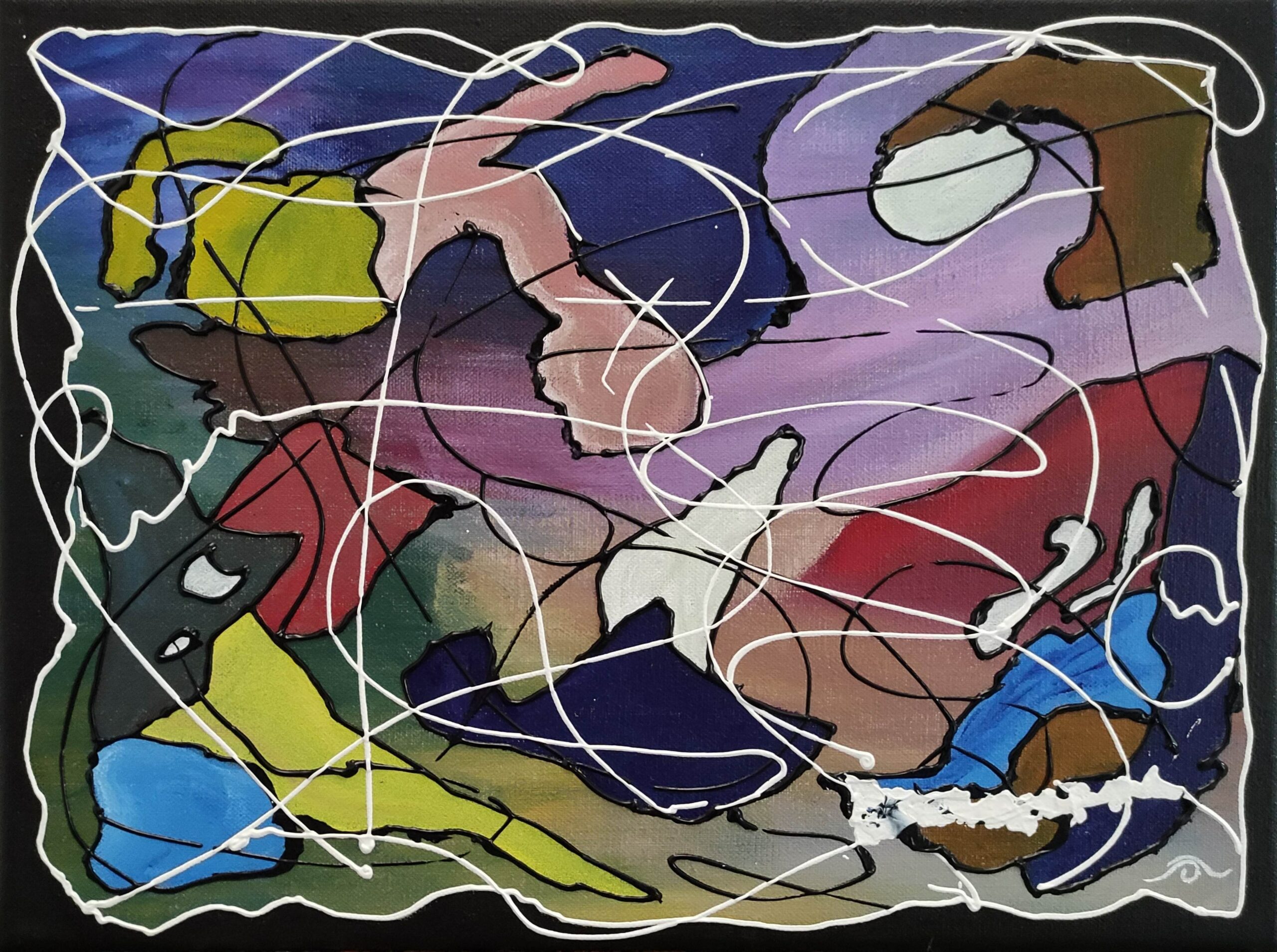 Découvert au fil de son apprentissage, l’art abstrait est un moyen pour Clarence d’appréhender autrement l’acte de peindre. Ne pas chercher à représenter permet de laisser libre court à l’imaginaire et à la matérialisation des émotions sur la toile.