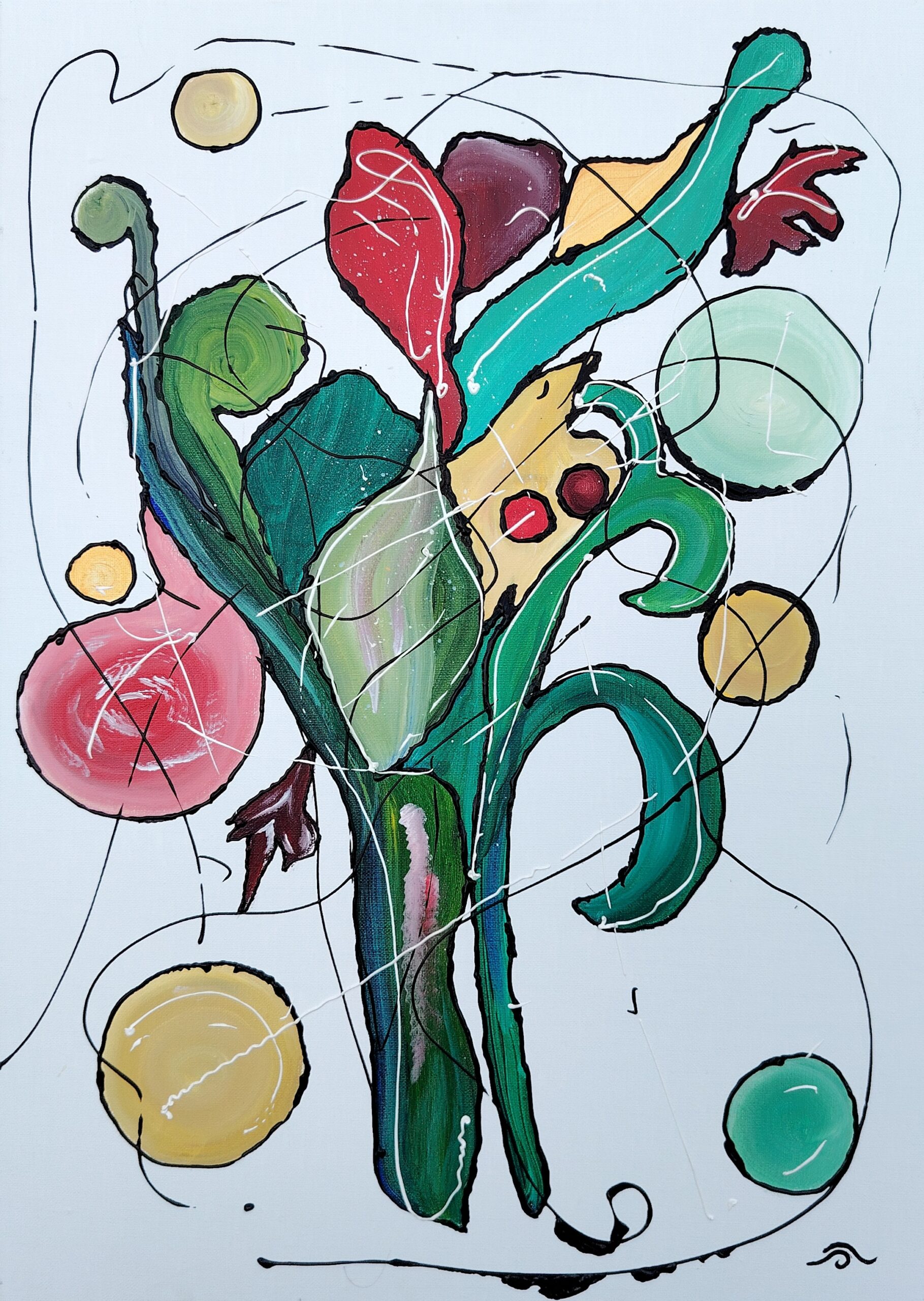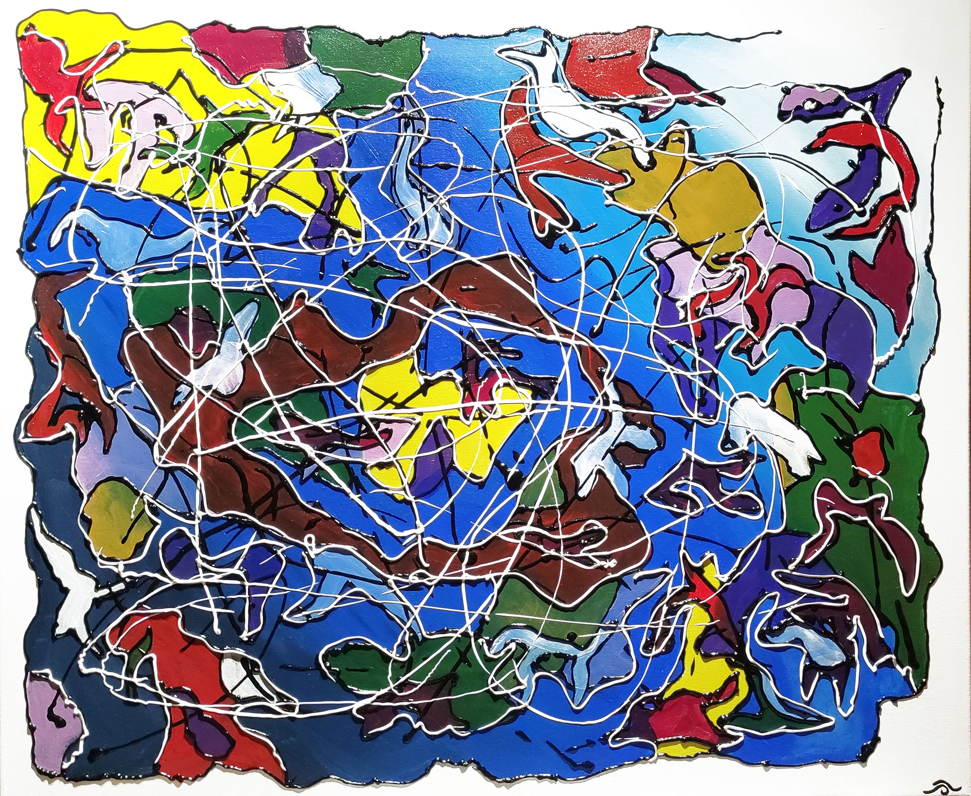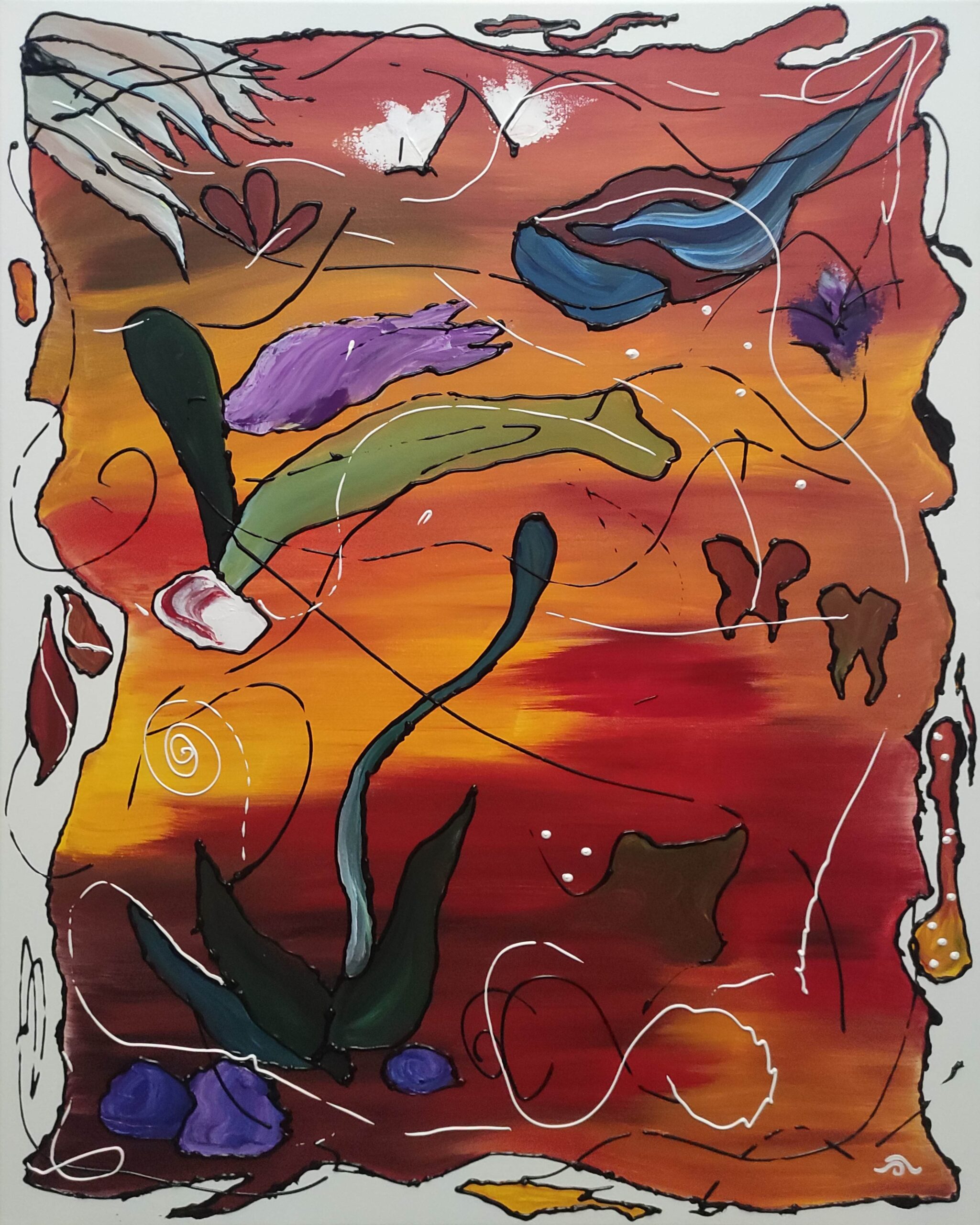 Découvert au fil de son apprentissage, l’art abstrait est un moyen pour Clarence d’appréhender autrement l’acte de peindre. Ne pas chercher à représenter permet de laisser libre court à l’imaginaire et à la matérialisation des émotions sur la toile.