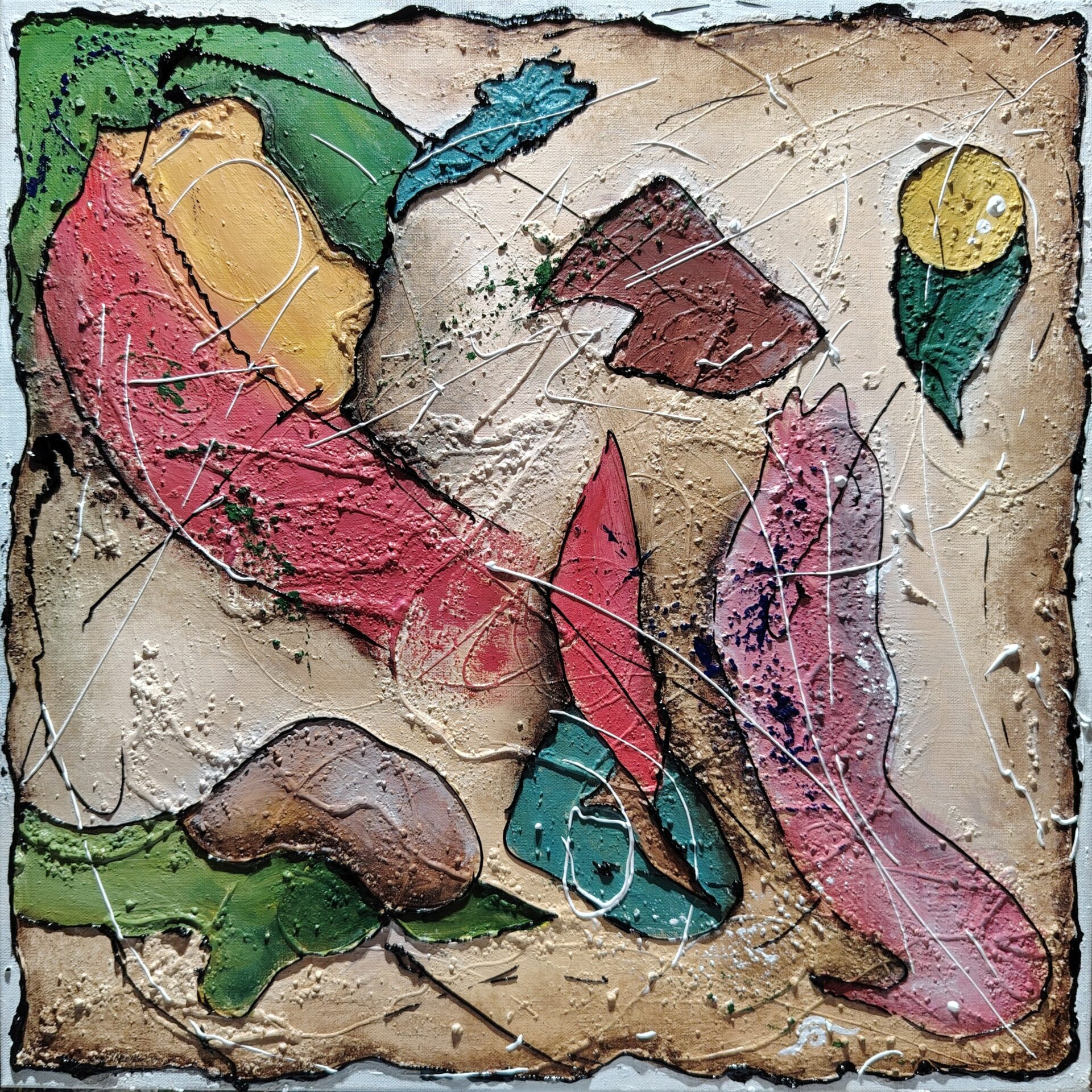 Découvert au fil de mon apprentissage, l’art abstrait est un moyen pour moi de laisser partir mon imagination et mes pensées là où elles souhaitent aller. D’une première idée, mon tableau abstrait a souvent un rendu final que je n’avais pas réfléchi à l’avance. Je laisse mes visions et mon coup de pinceau tracer le chemin. Une histoire construite au fur et à mesure qui sera différente pour chacun.