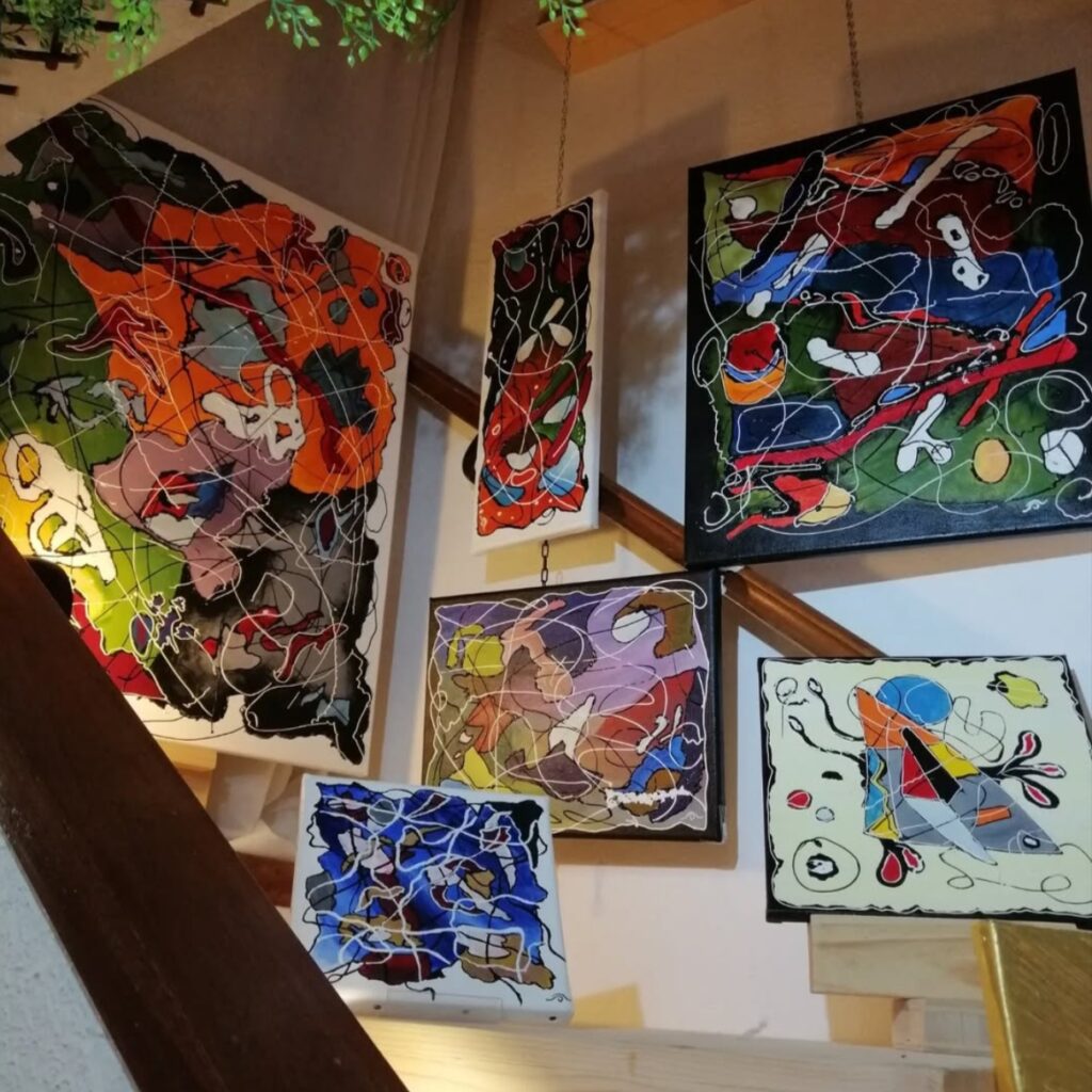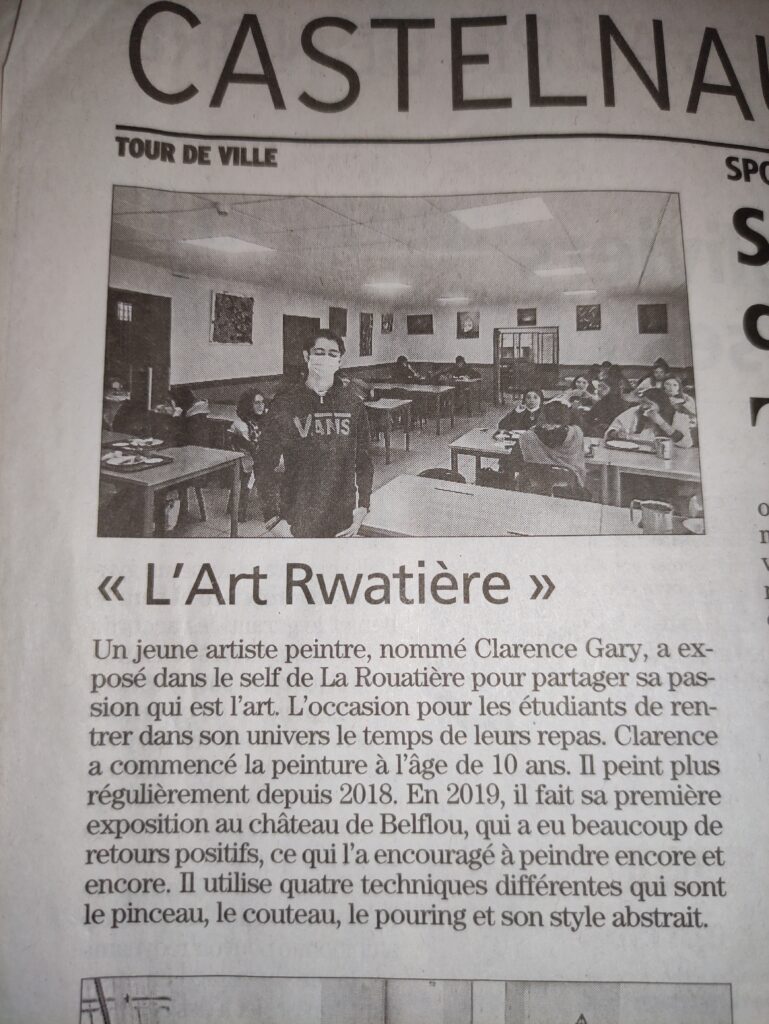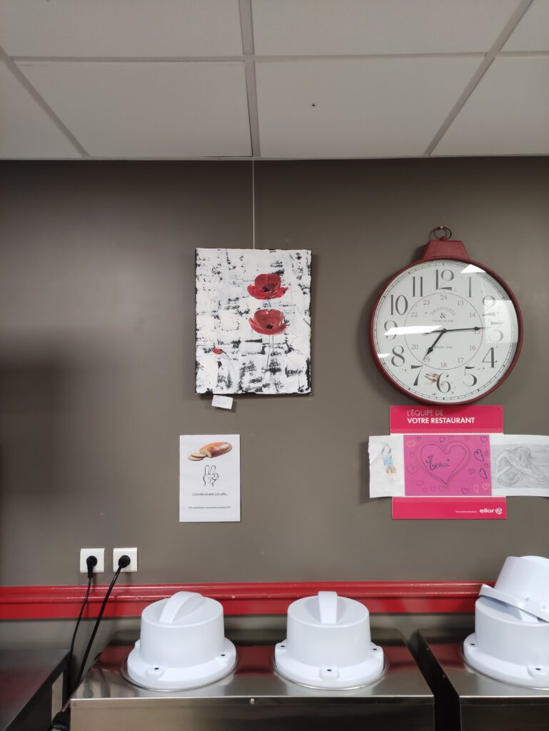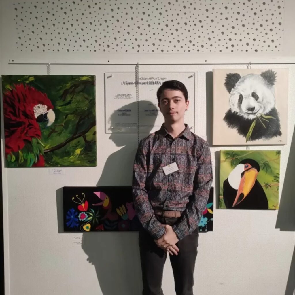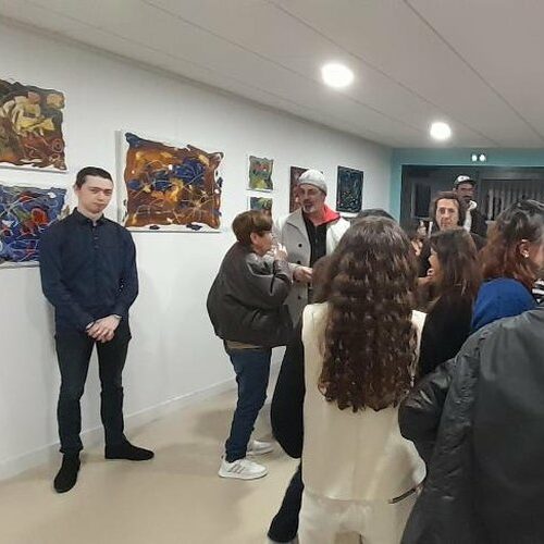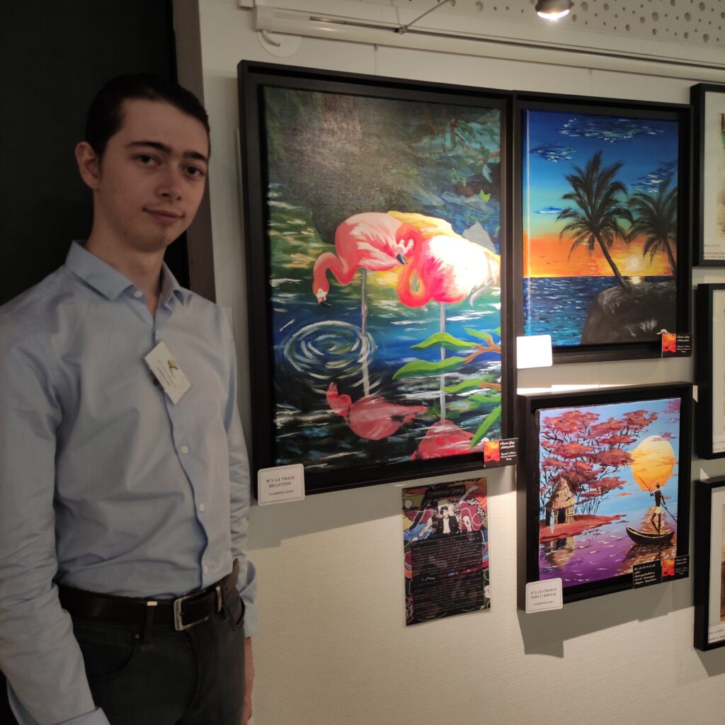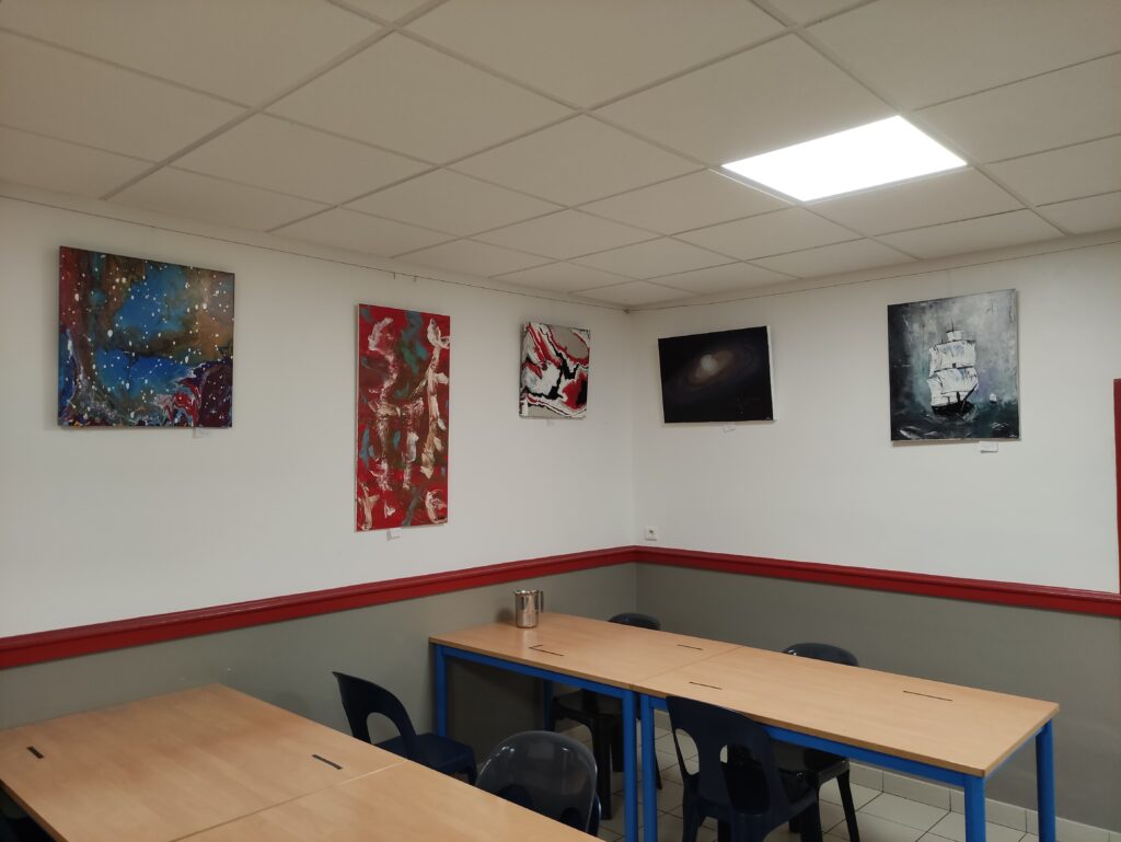 Suite à une demande de ma part et de leur connaissance de ma pratique en peinture, nous avons organisé une exposition de mes différentes toiles dans le self du lycée « La Rouatière », là où j’ai passé mon bac pro SAPAT (service à la personne et au territoire).