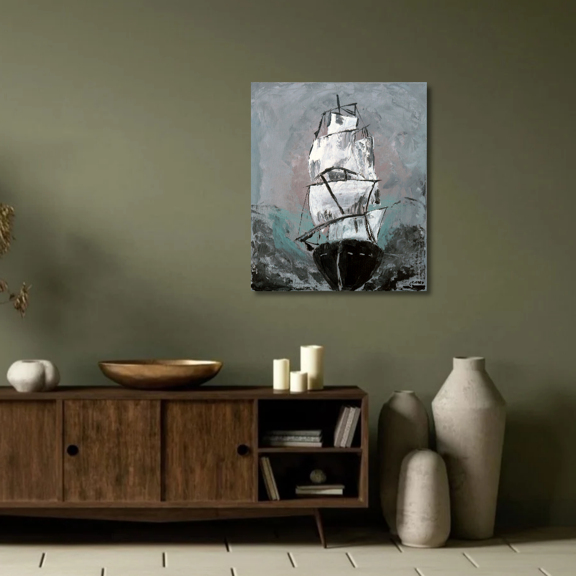 Les bords du tableau sont peints afin de prolonger d’avantage l’histoire de la peinture. Il est également faisable d’y rajouter une caisse américaine pour un rendu élégant.