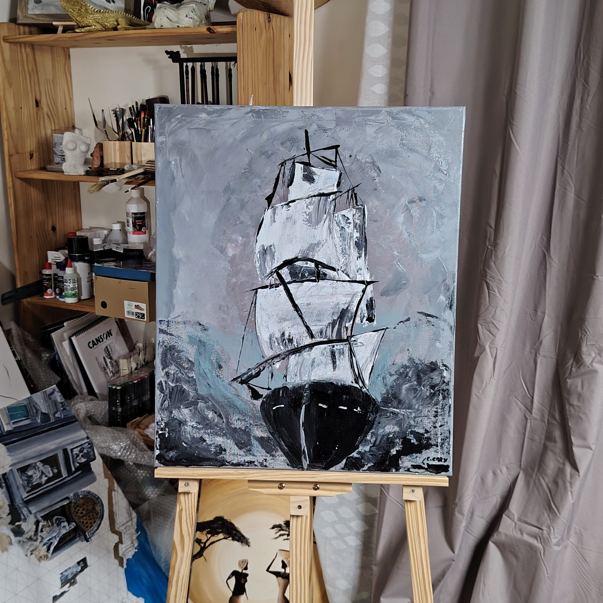 Ce magnifique tableau a été peint à la peinture acrylique, avec une finition au vernis satiné, sur un format moyen rectangulaire (portrait) 54 x 65 cm.