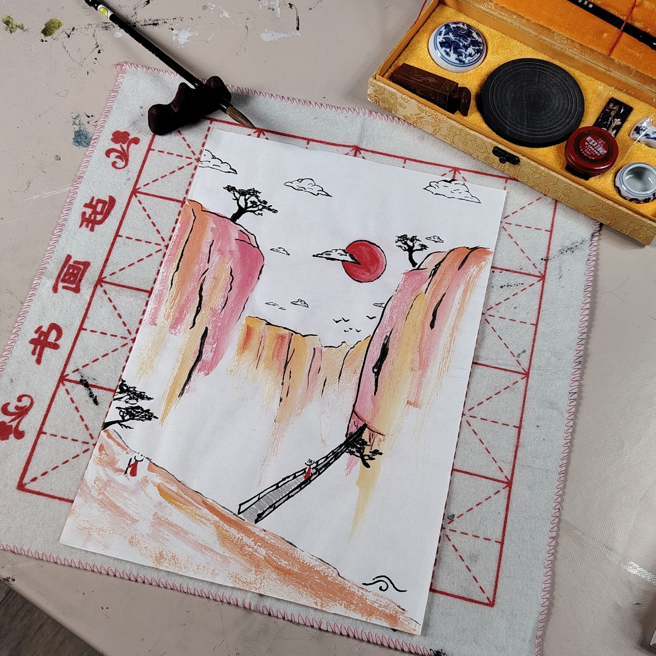 Ce magnifique tableau a été peint à la peinture traditionnelle chinoise, sur un format rectangulaire (portrait) 29,7 x 42 cm (A3).