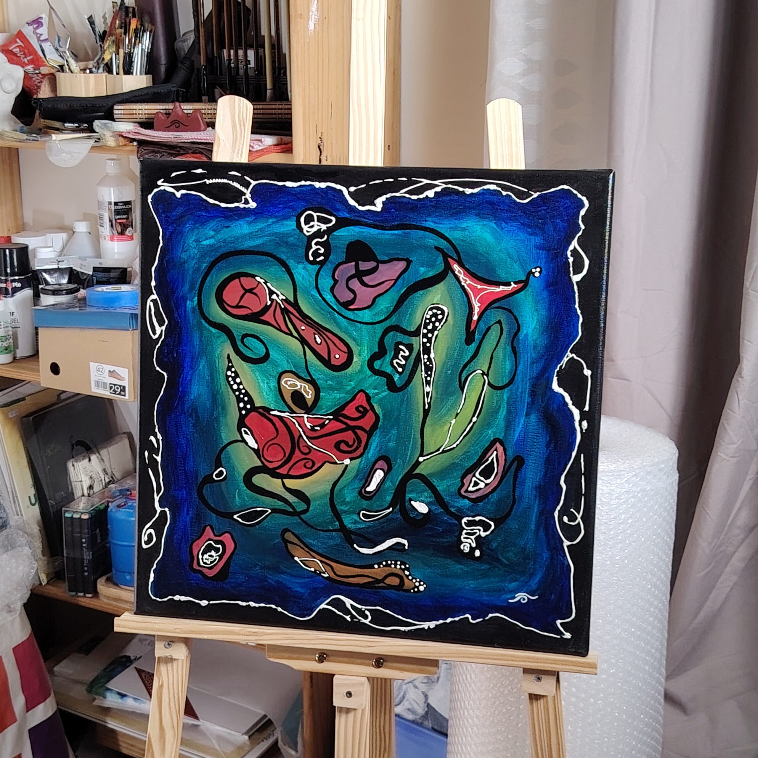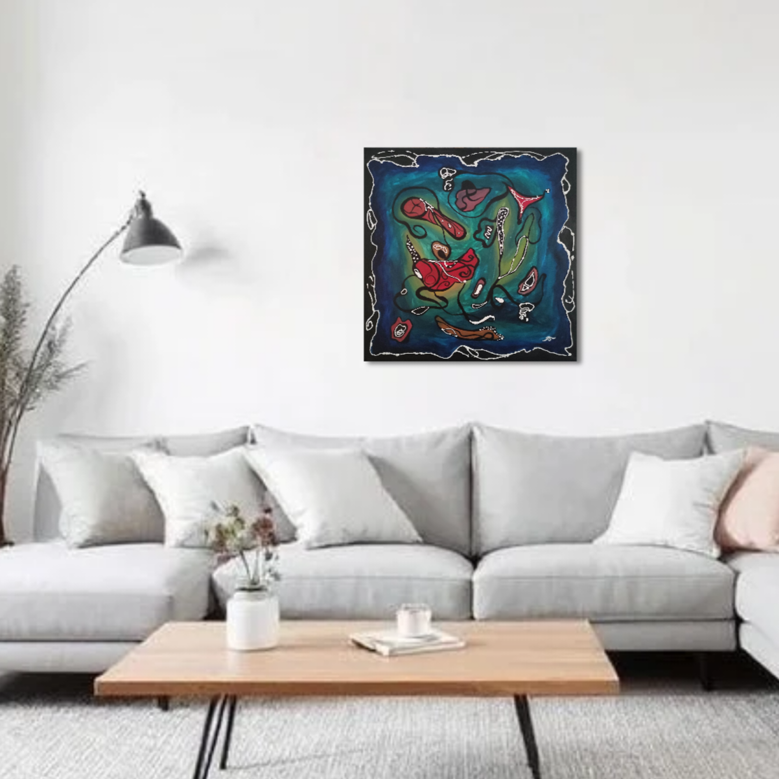 Ce magnifique tableau a été peint à la peinture acrylique extra-fine et une finition au vernis brillant, sur un format moyen carré 50 x 50 cm.