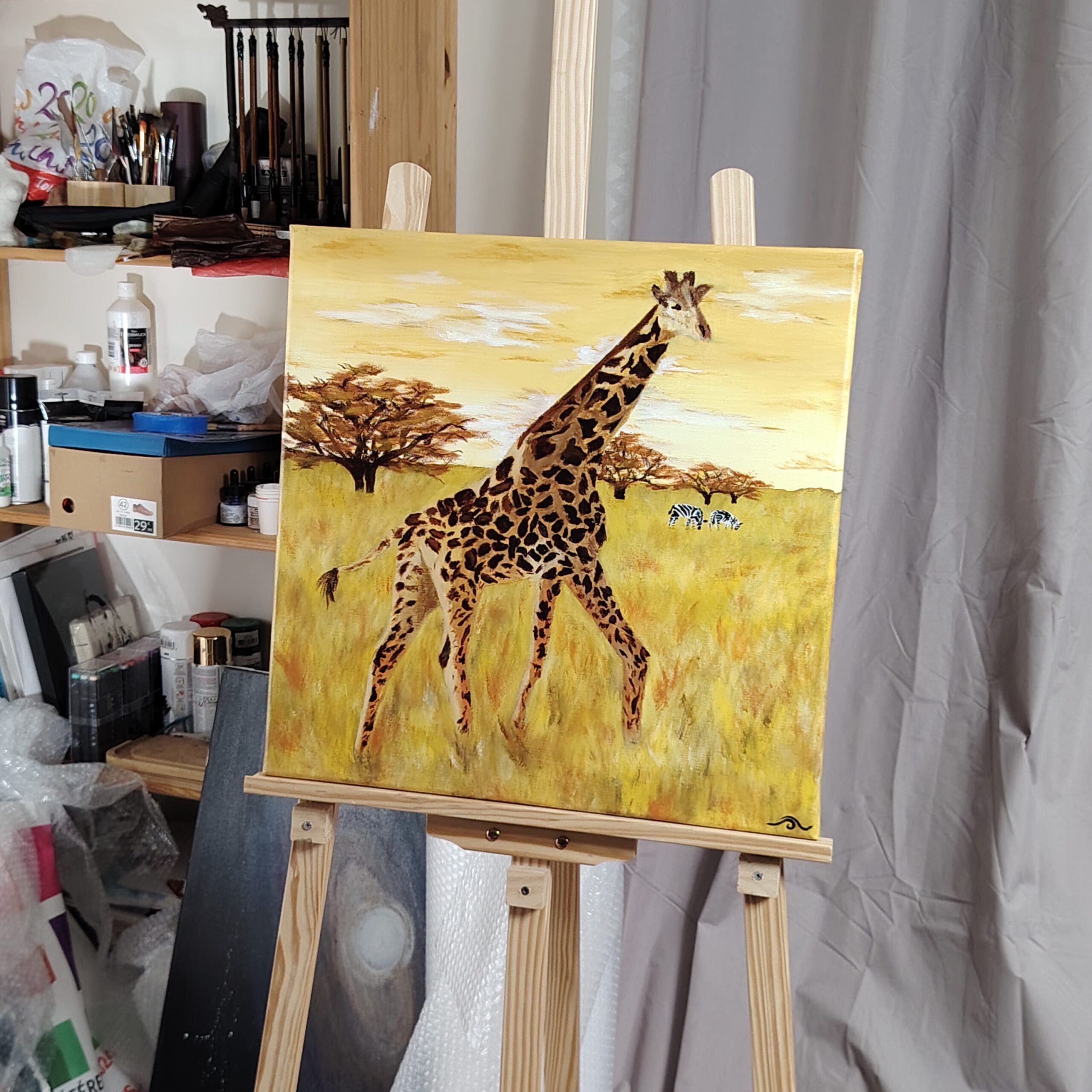 Ce magnifique tableau a été peint à la peinture acrylique extra-fine, avec une finition au vernis satiné, sur un format moyen carré 50 x 50 cm.