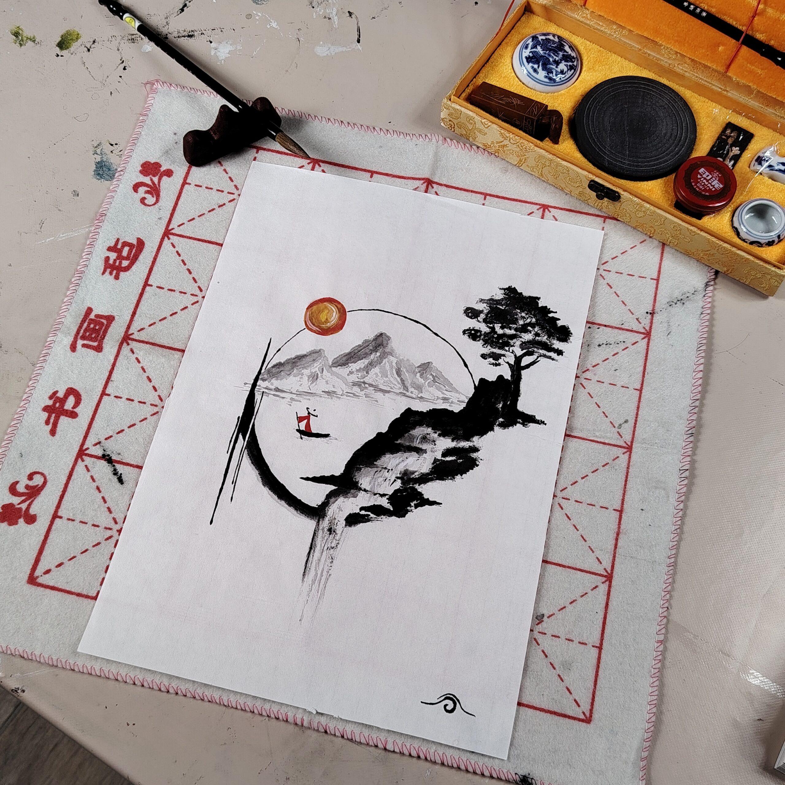 Réalisé au pinceau en poil de loup en août 2025 sur du papier de Xuan (feuille de riz).