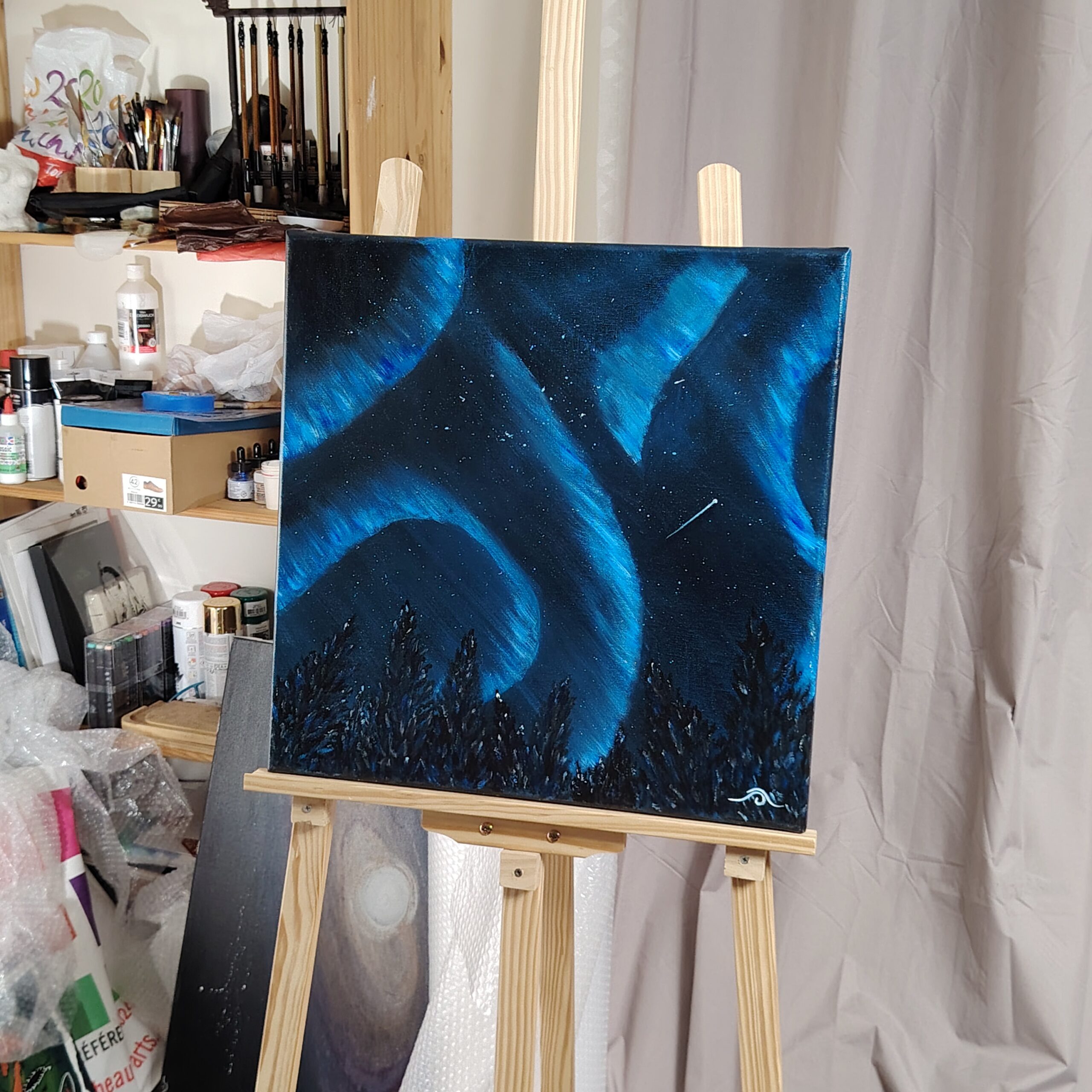 Ce magnifique tableau a été peint à la peinture acrylique extra-fine, avec une finition au vernis satiné, sur un format moyen carré 50 x 50 cm.