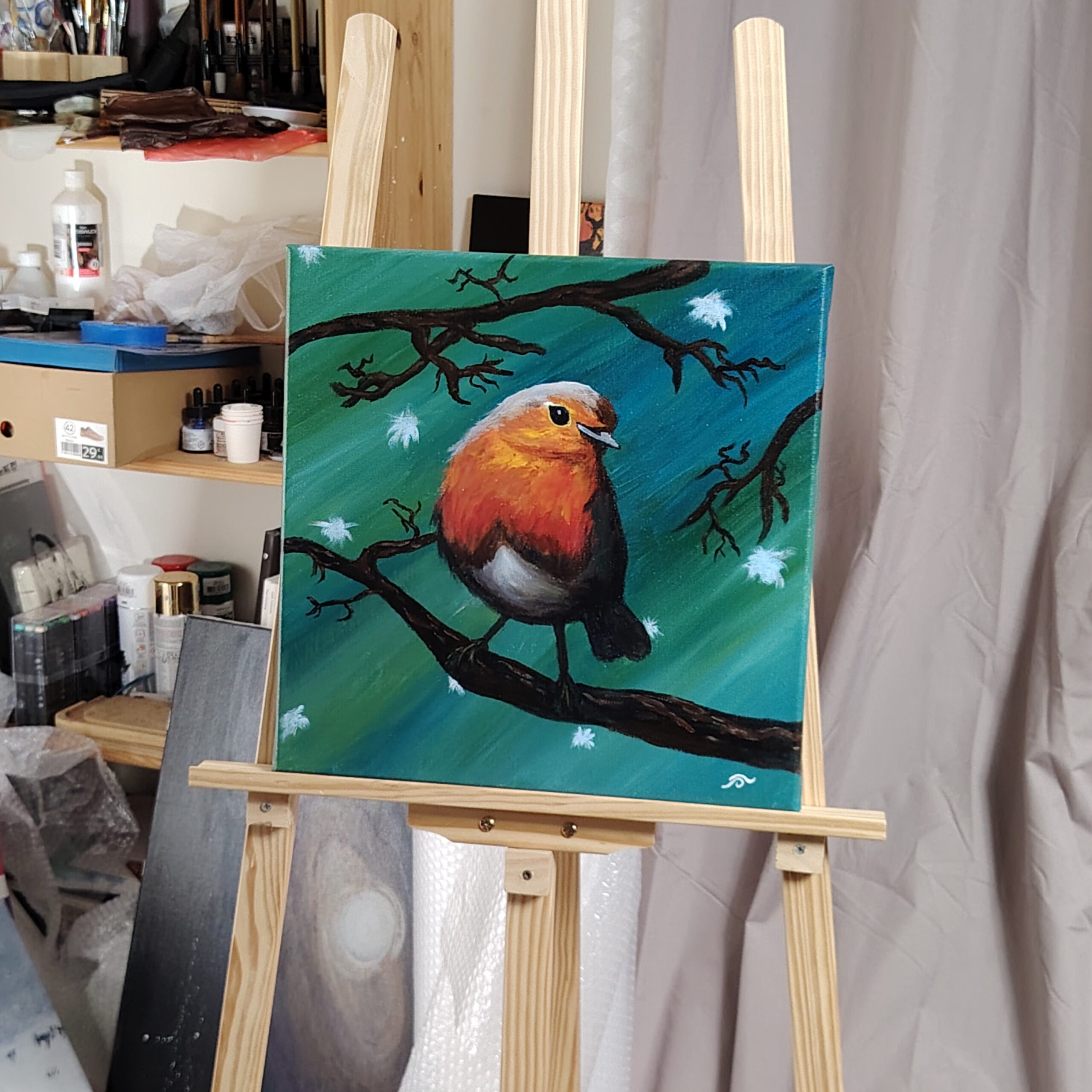 Ce magnifique tableau a été peint à la peinture acrylique extra-fine, avec une finition au vernis satiné, sur un format moyen carré 40 x 40 cm.
