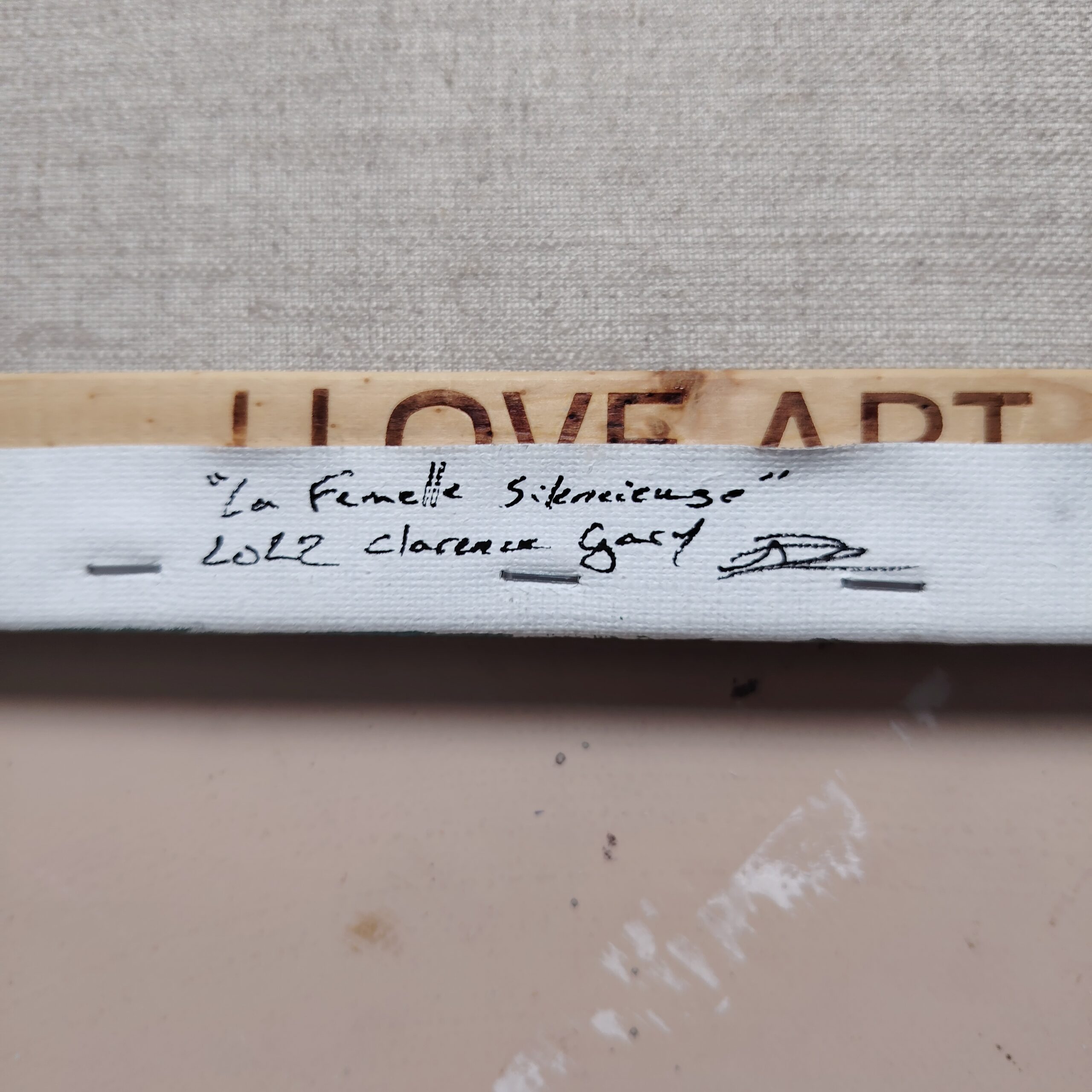 Réalisé au pinceau en novembre 2022 sur un châssis entoilé « I love Art » de 1,7 cm d’épaisseur et une toile 100% lin à grain moyen 400g/m² agrafée sur l’arrière.