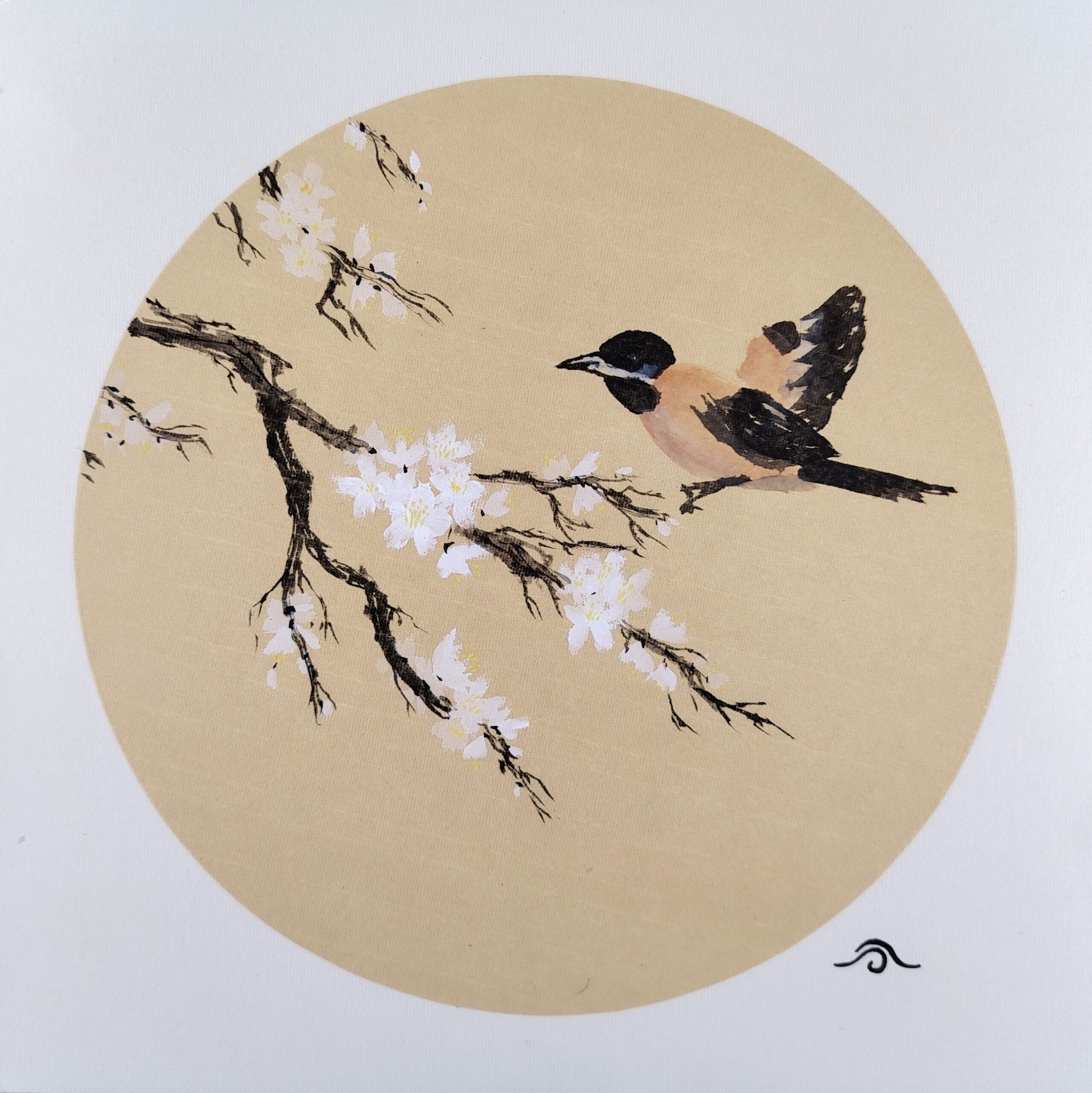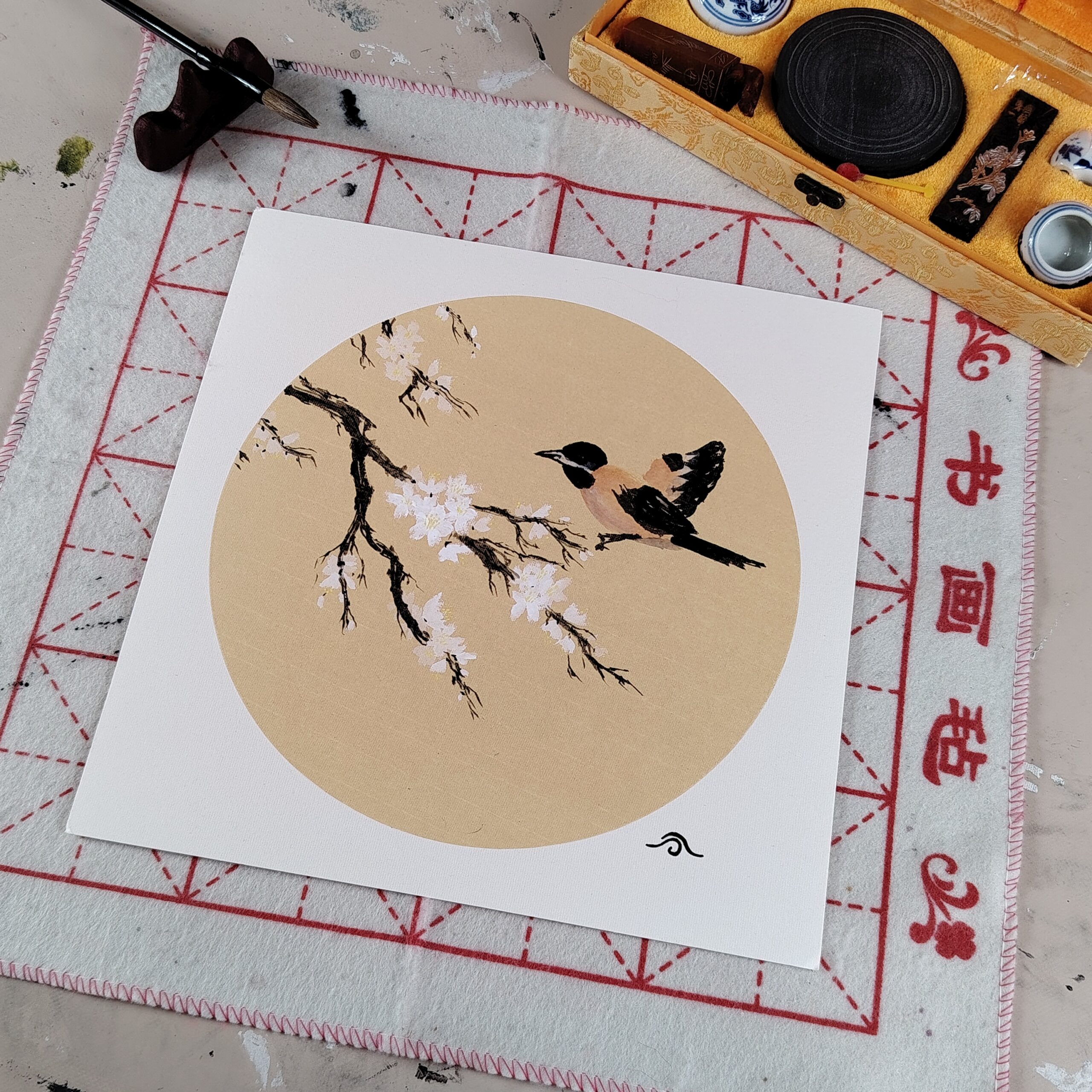 Ce magnifique tableau a été peint à la peinture traditionnelle chinoise, sur un format carré 33 x 33 cm.
