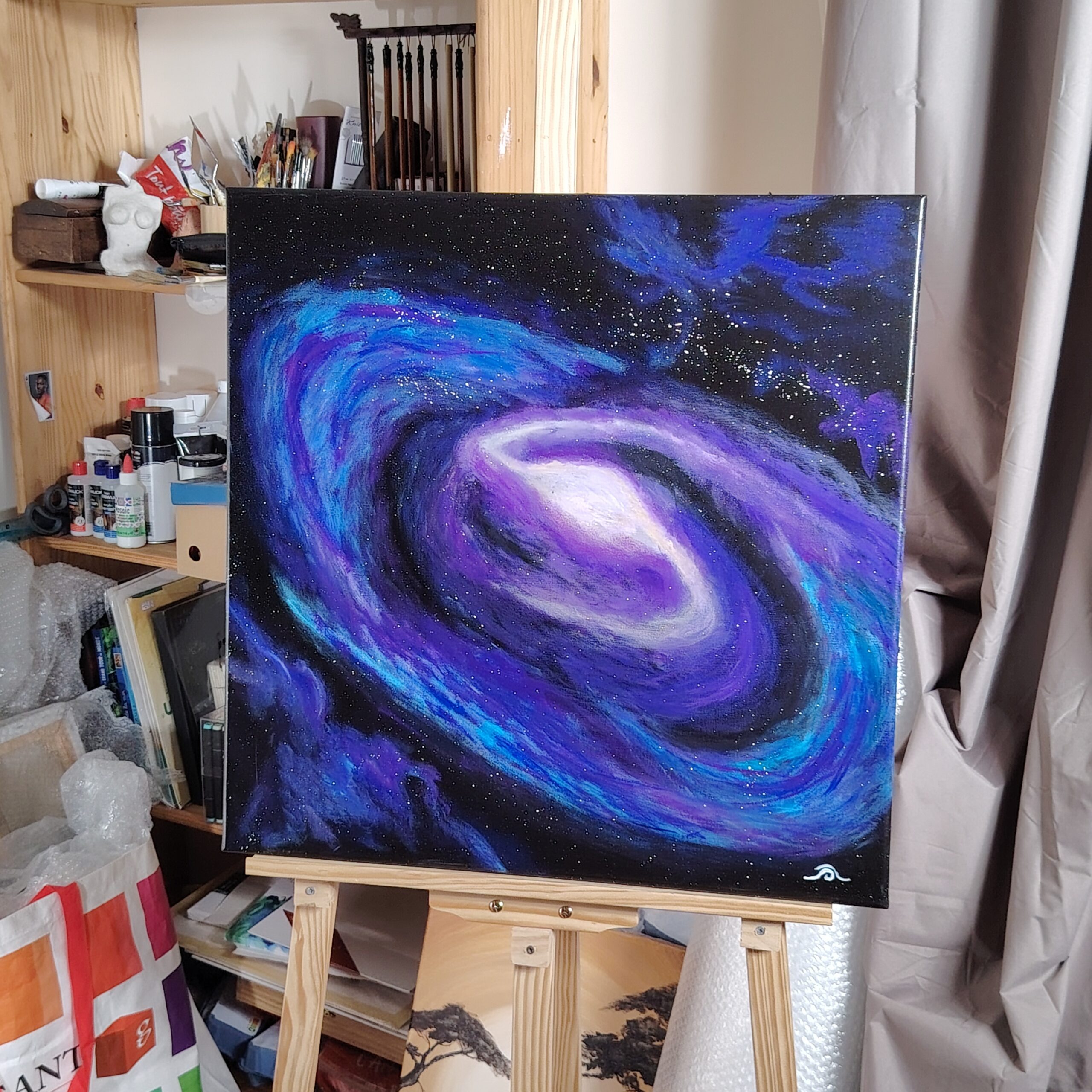 Ce magnifique tableau a été peint à la peinture acrylique extra-fine, avec une finition au vernis satiné, sur un format moyen carré 60 x 60 cm.