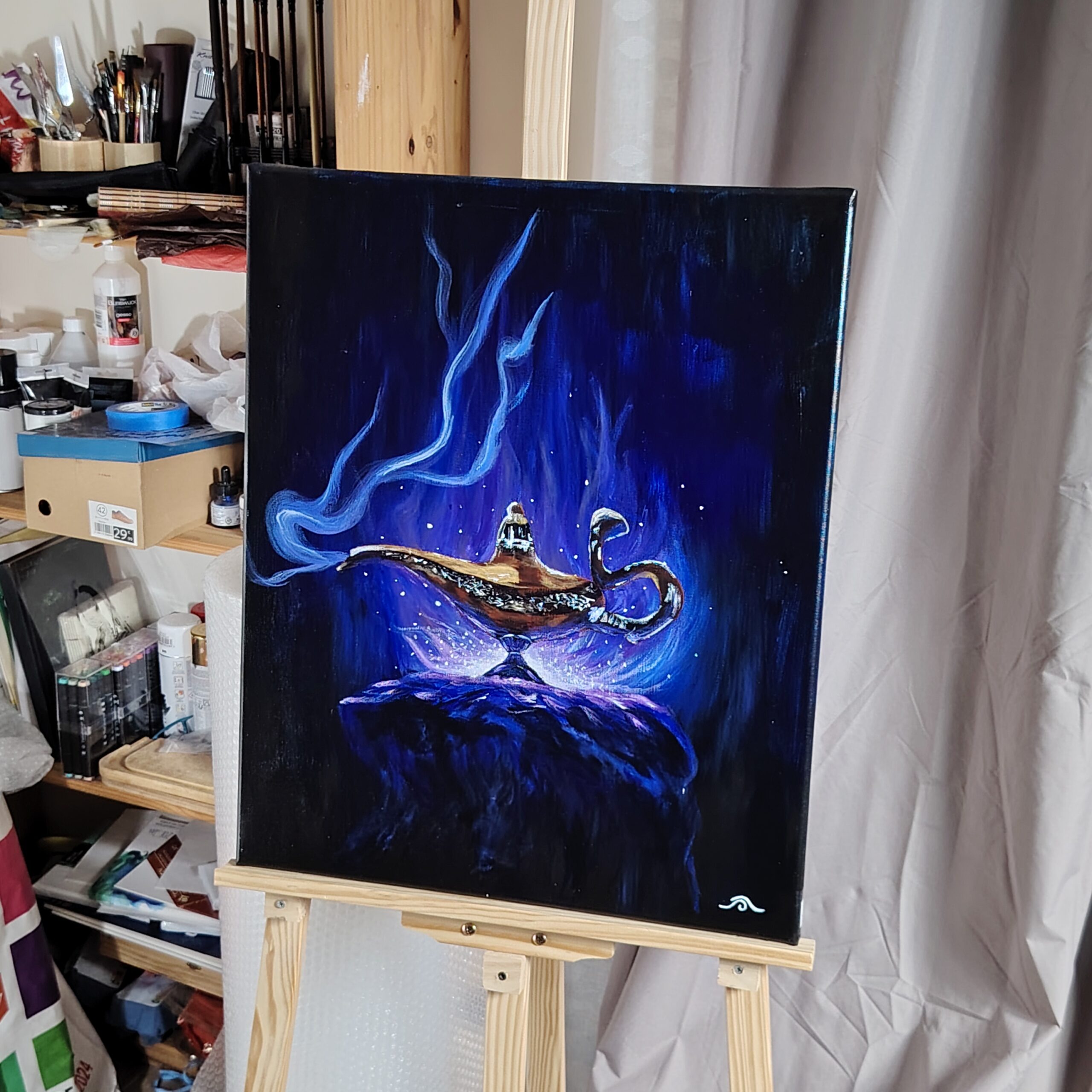 Ce magnifique tableau a été peint à la peinture acrylique extra-fine, avec une finition au vernis satiné, sur un format moyen rectangulaire (portrait) 50 x 61 cm.