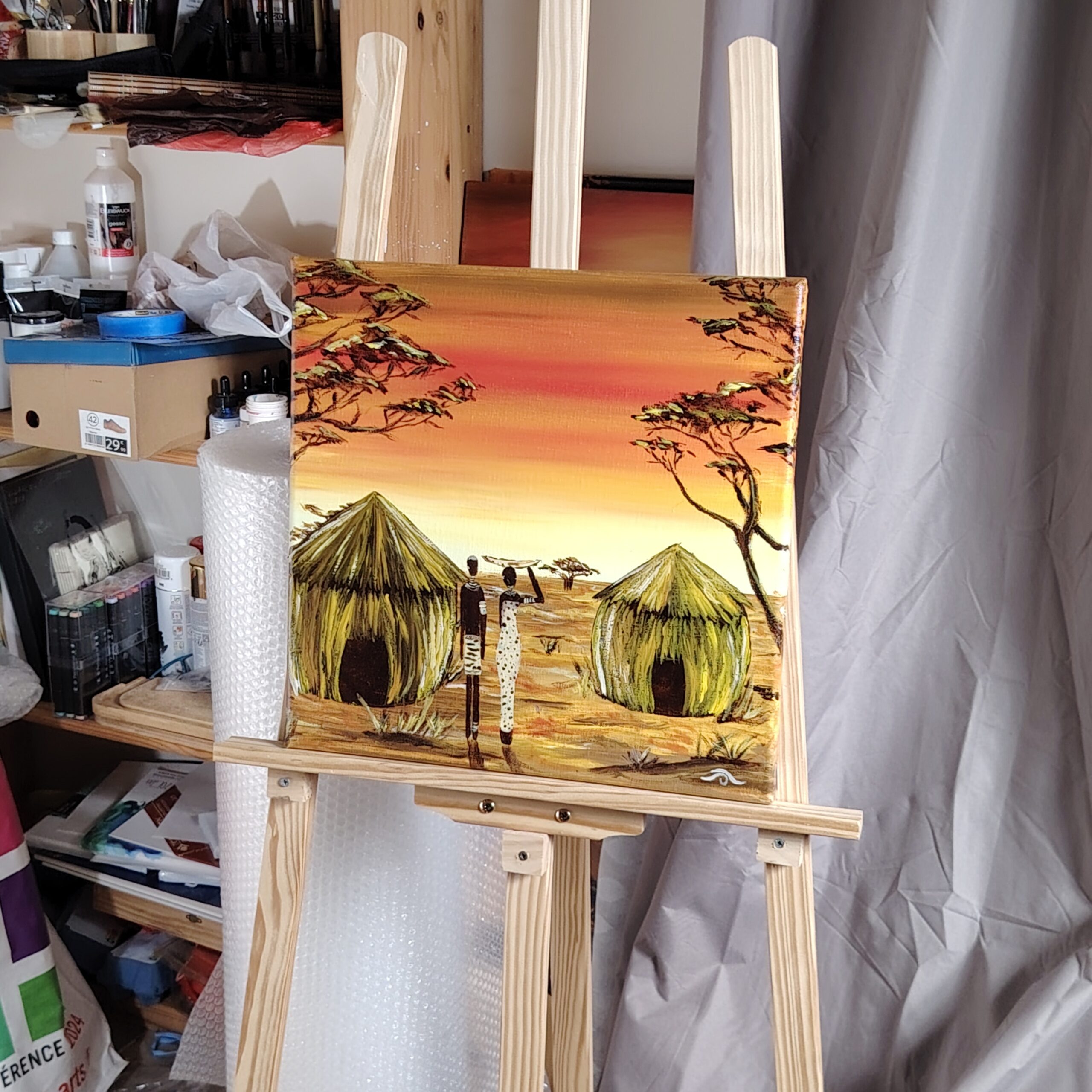 Ce magnifique tableau a été peint à la peinture acrylique extra-fine, avec une finition au vernis satiné, sur un petit format carré 40 x 40 cm.