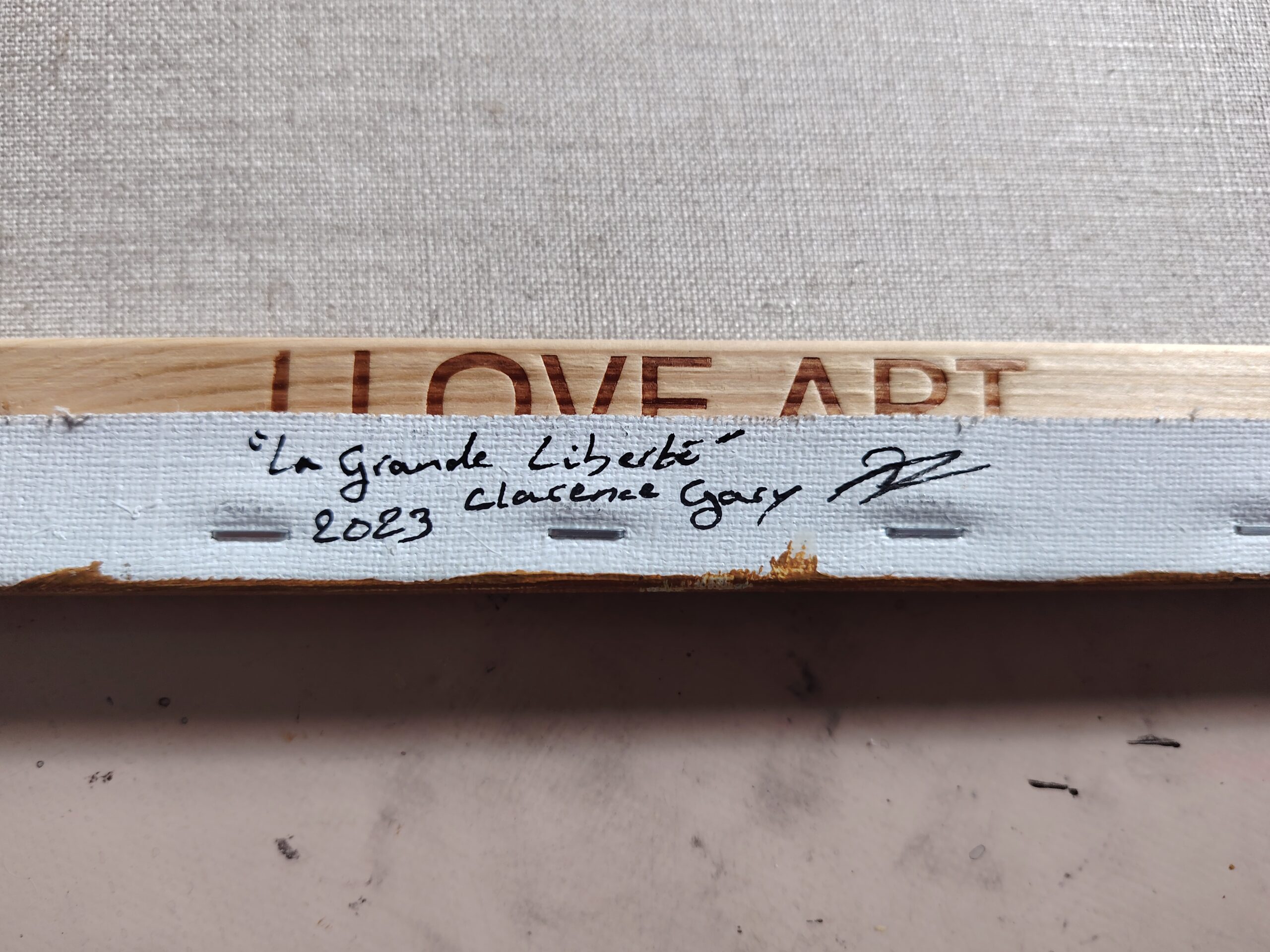 Réalisé au pinceau en Décembre 2023 sur un châssis entoilé « I love Art » de 1,7 cm d’épaisseur et une toile 100% lin agrafée sur l’arrière.