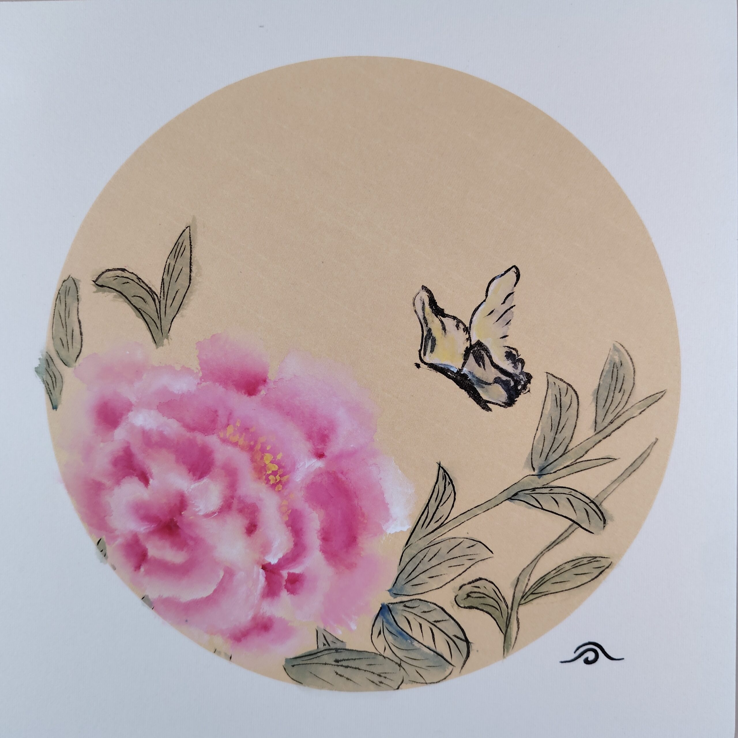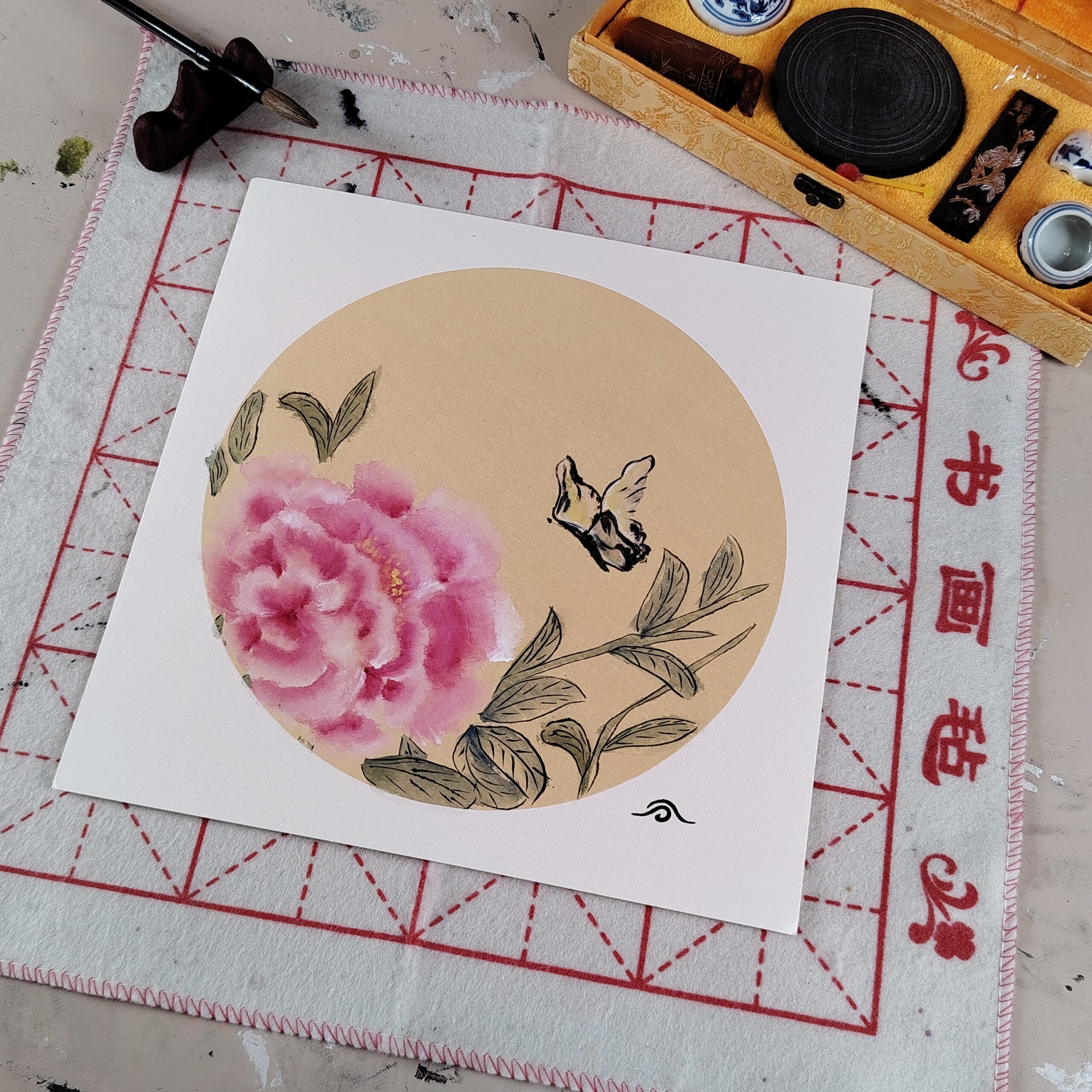 Ce magnifique tableau a été peint à la peinture traditionnelle chinoise, sur un format carré 33 x 33 cm.