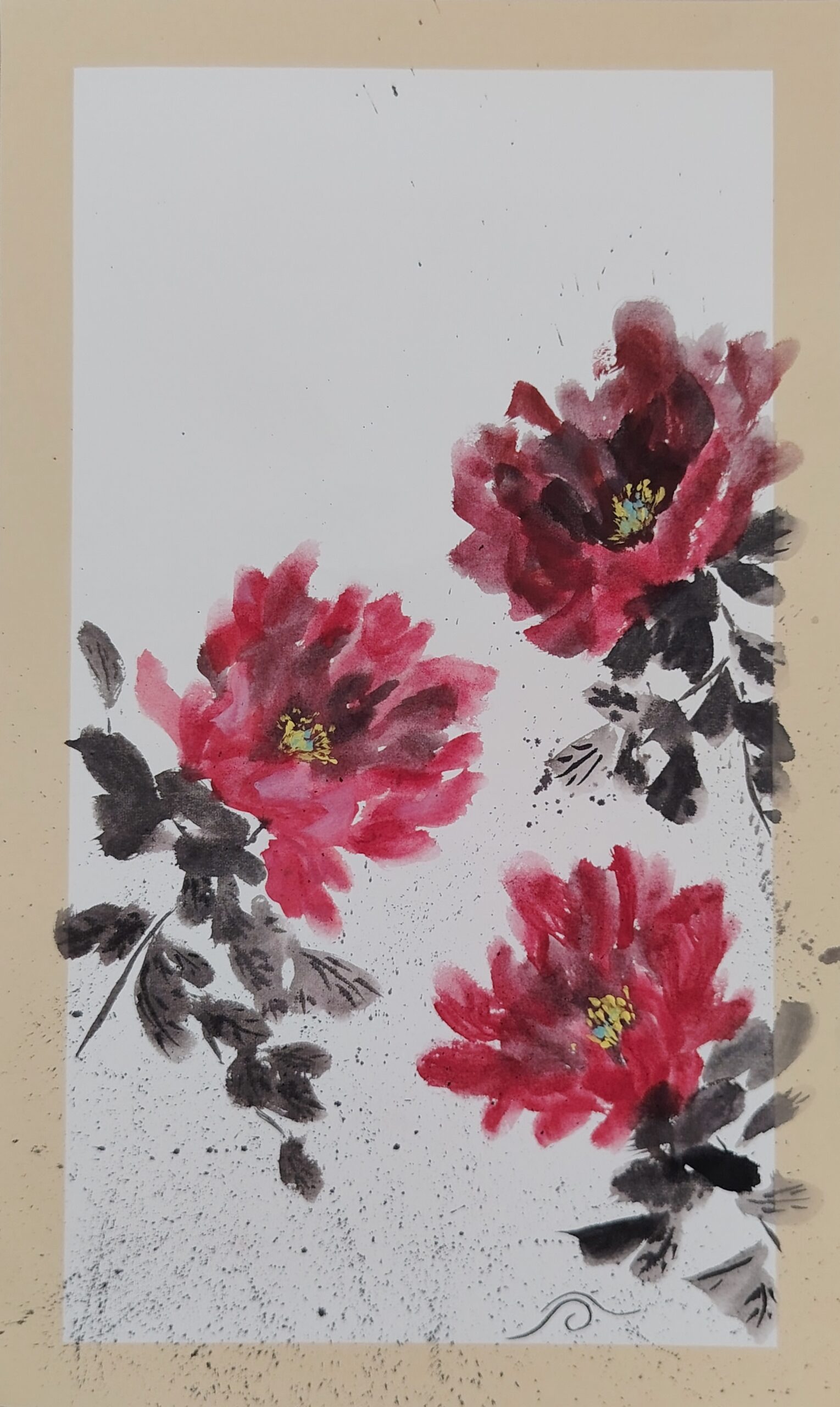 Ce magnifique tableau a été peint à la peinture traditionnelle chinoise, sur un format rectangulaire (portrait) 30 x 50 cm.