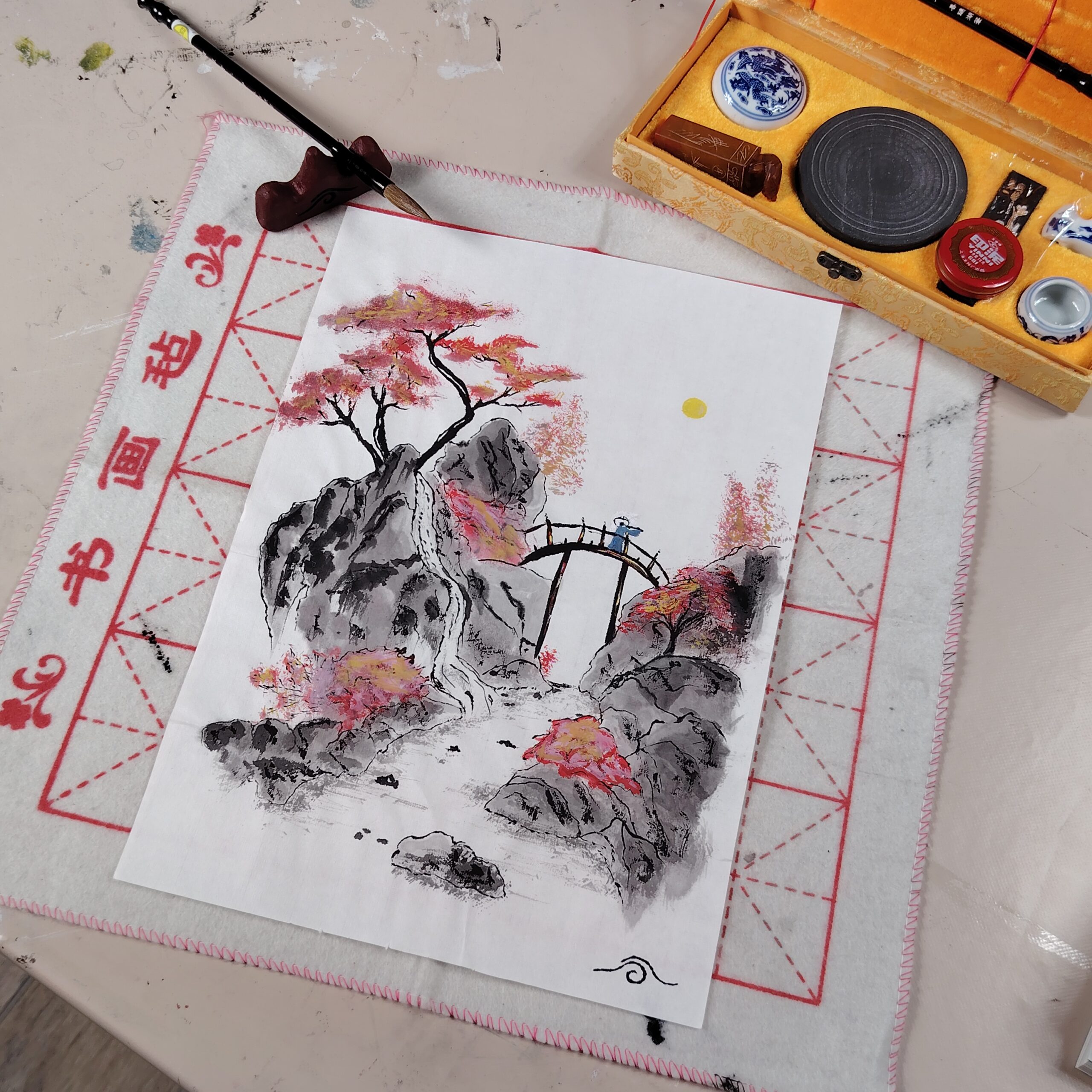 Réalisé au pinceau en poil de loup en octobre 2025 sur du papier de Xuan (feuille de riz).