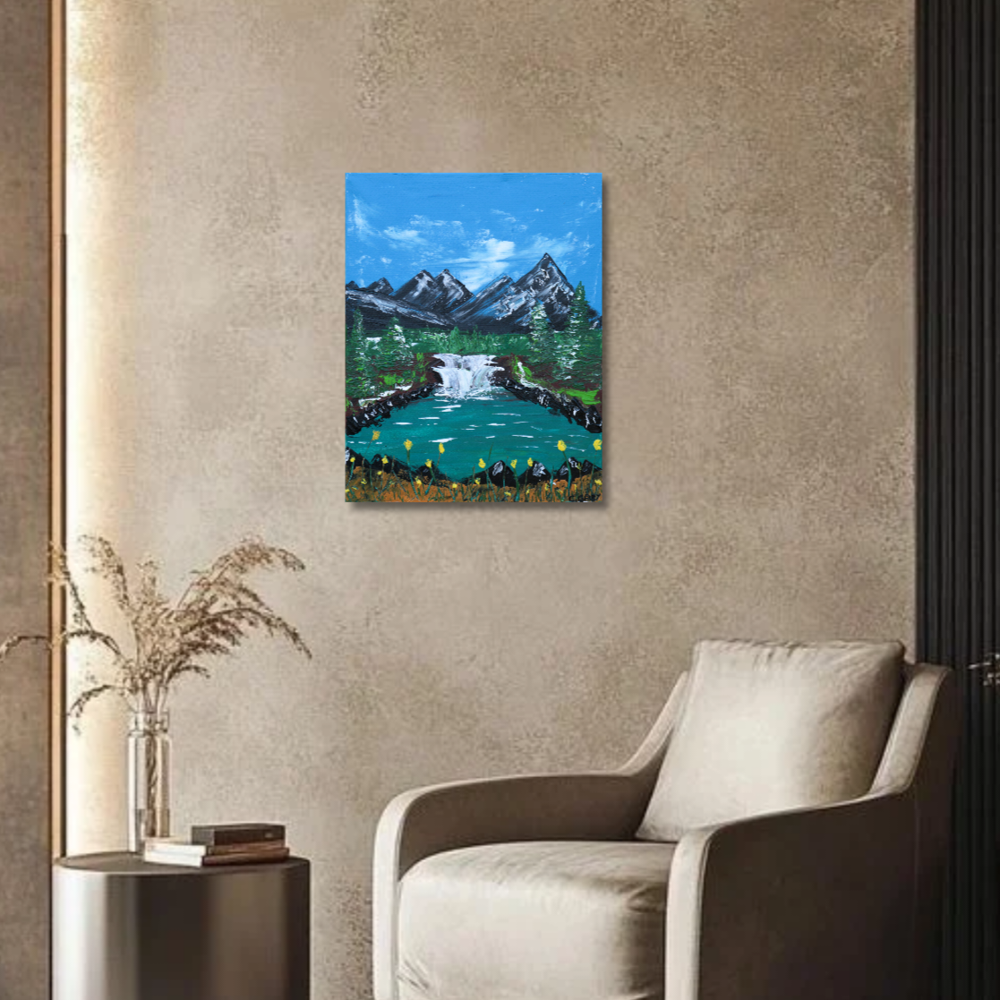 Ce magnifique tableau a été peint à la peinture acrylique, avec une finition au vernis satiné, sur un format moyen rectangulaire (portrait) 40 x 50 cm.