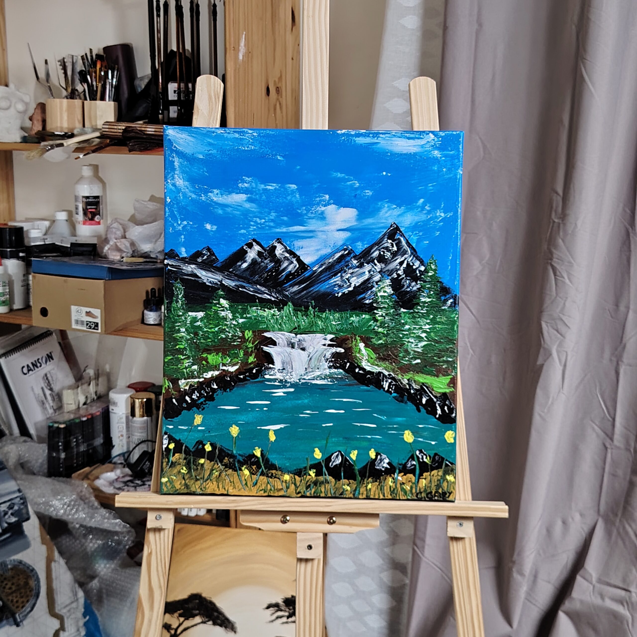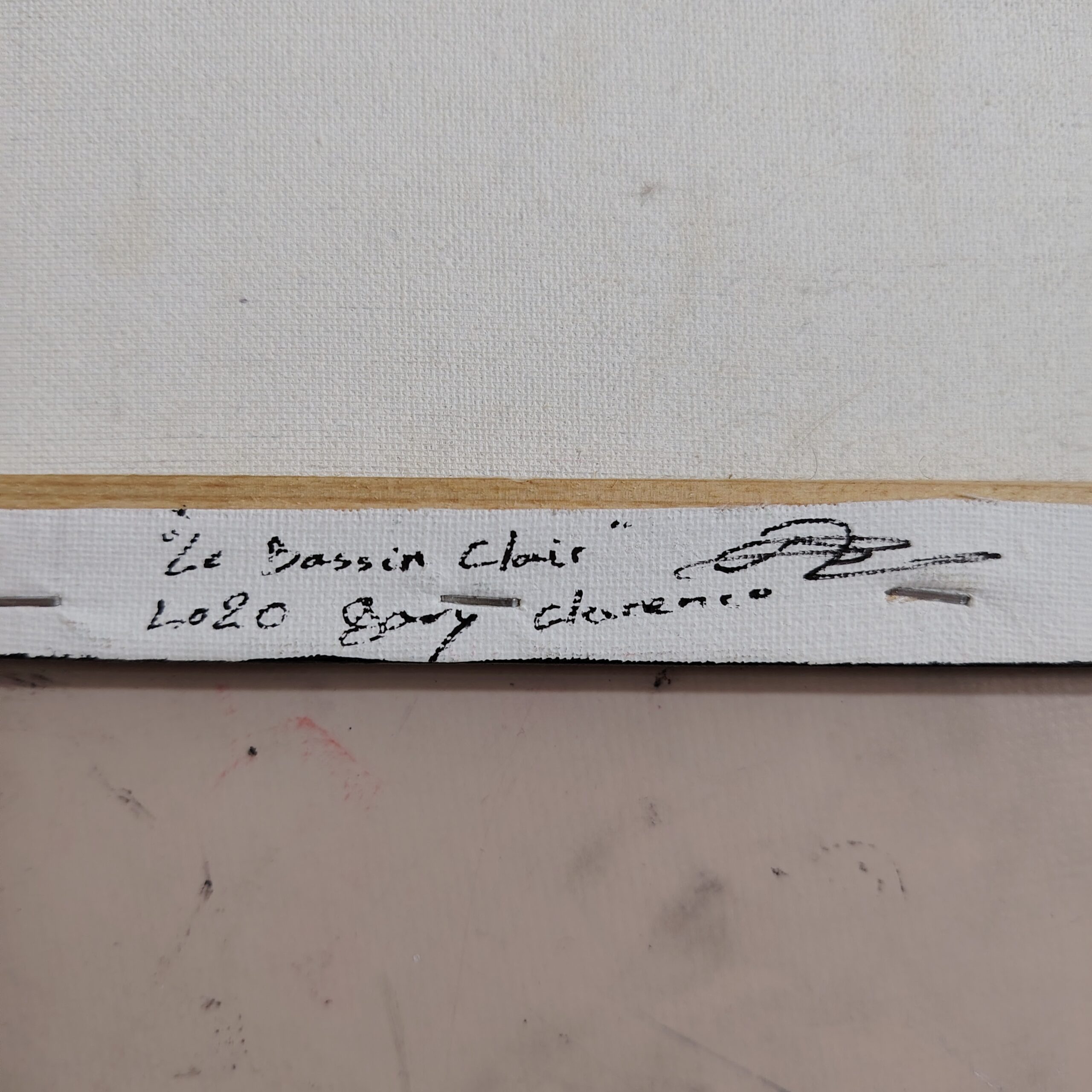 Réalisé au couteau en mars 2020 sur un châssis entoilé de 1,7 cm d’épaisseur et une toile 100% coton agrafée sur l’arrière.