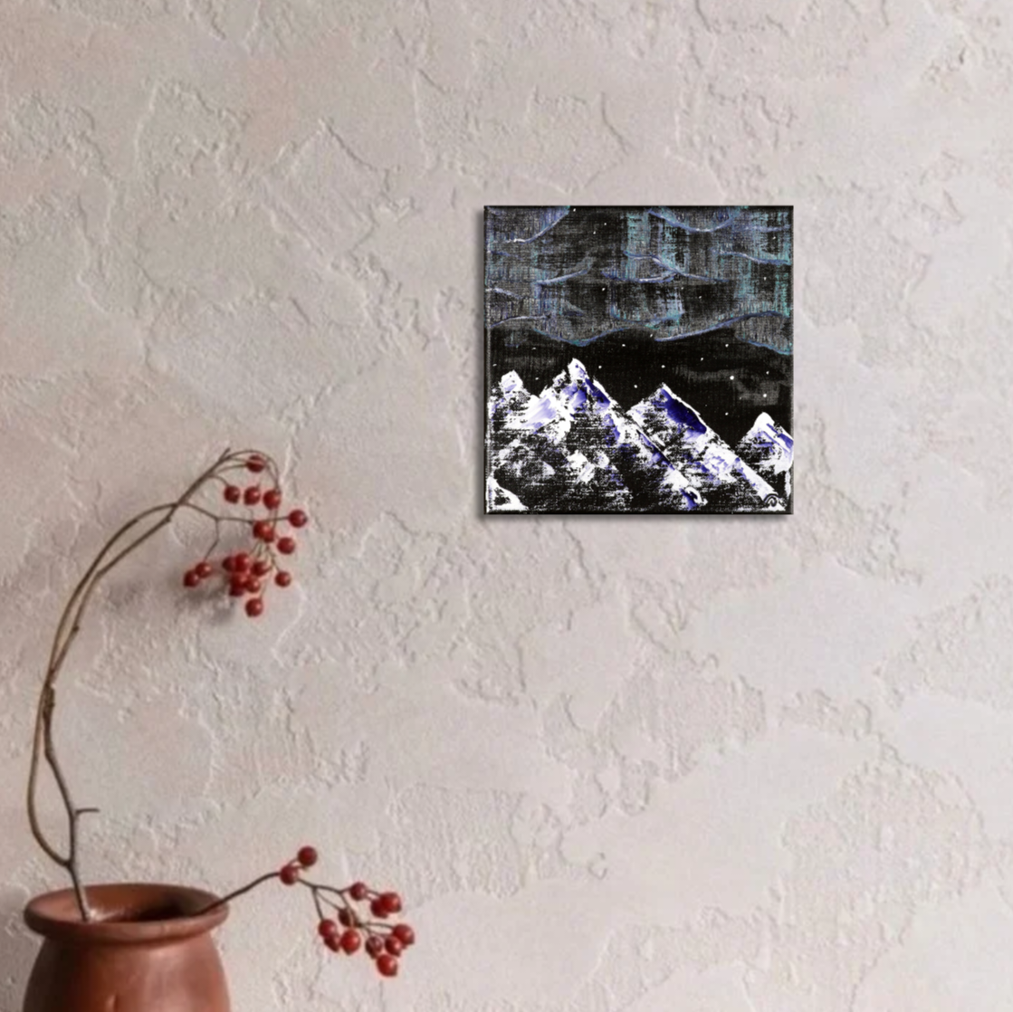 Ce magnifique tableau a été peint à la peinture acrylique extra-fine, avec une finition au vernis satiné, sur un petit format carré 20 x 20 cm.