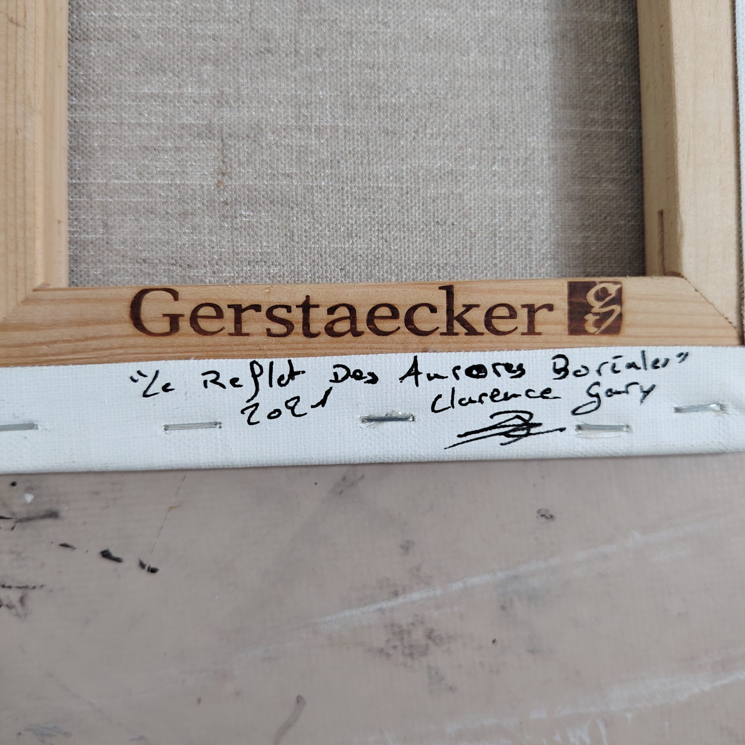 Réalisé au pinceau et au couteau en octobre 2021 sur un châssis entoilé « Gertsaecker » de 1,7 cm d’épaisseur et une toile 100% lin 350g/m² agrafée sur l’arrière.