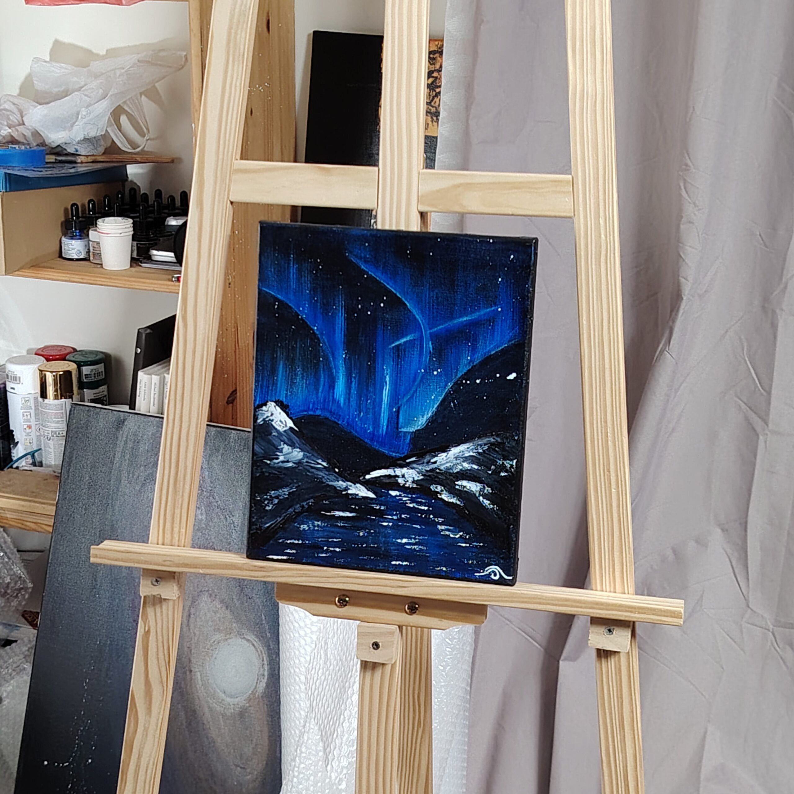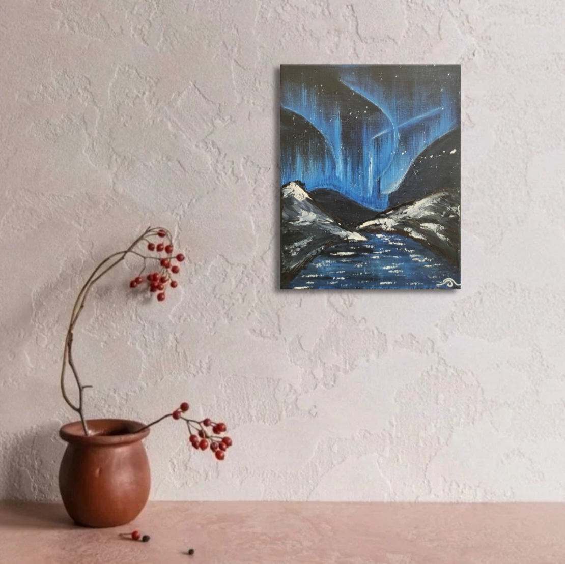 Ce magnifique tableau a été peint à la peinture acrylique extra-fine, avec une finition au vernis satiné, sur un petit format rectangulaire (portrait) 24 x 30 cm.