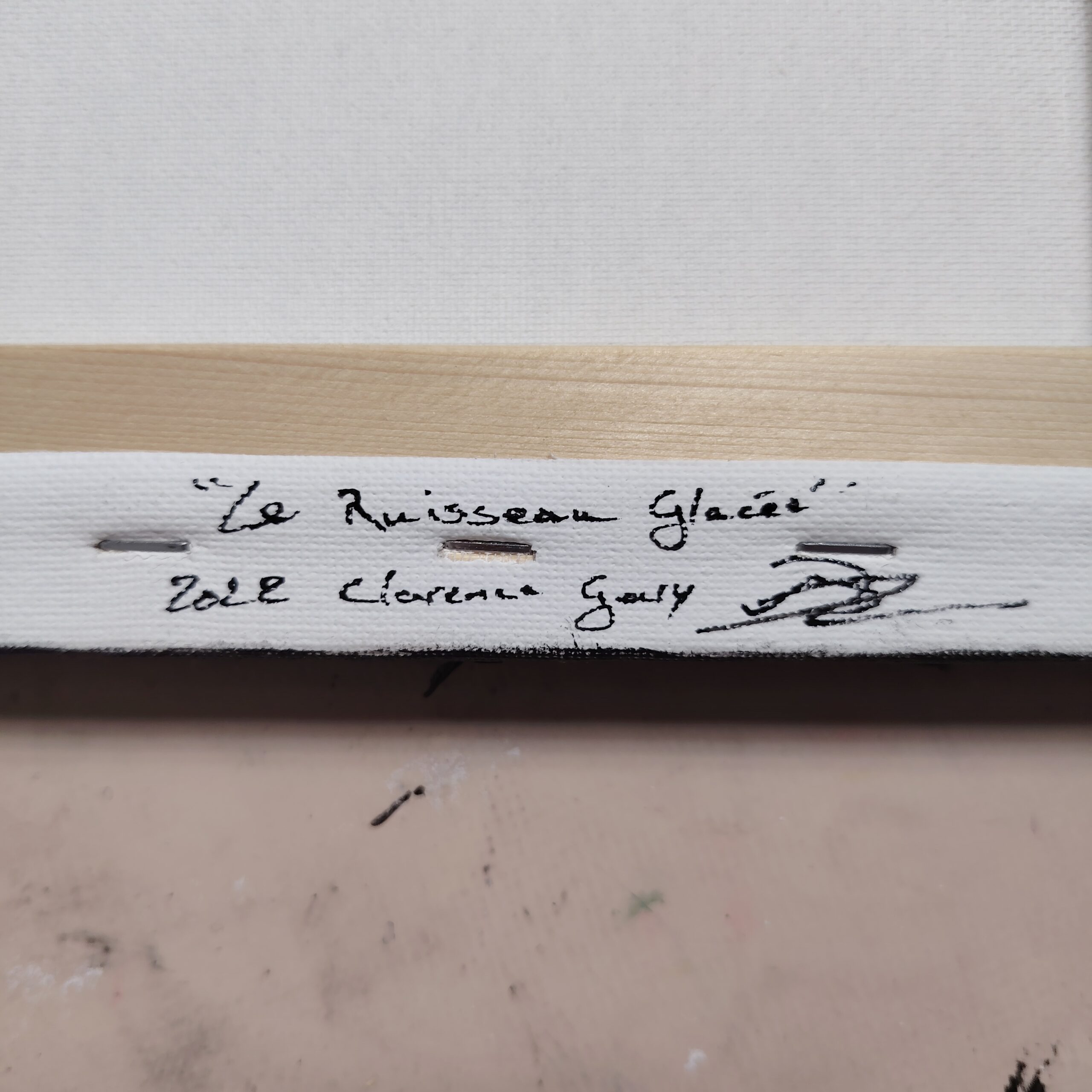 Réalisé au pinceau et au couteau en mai 2022 sur un châssis entoilé de 1,7 cm d’épaisseur et une toile 100% coton agrafée sur l’arrière.