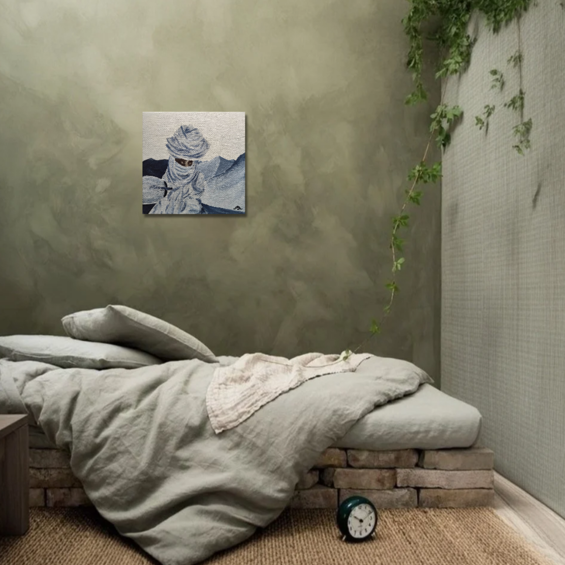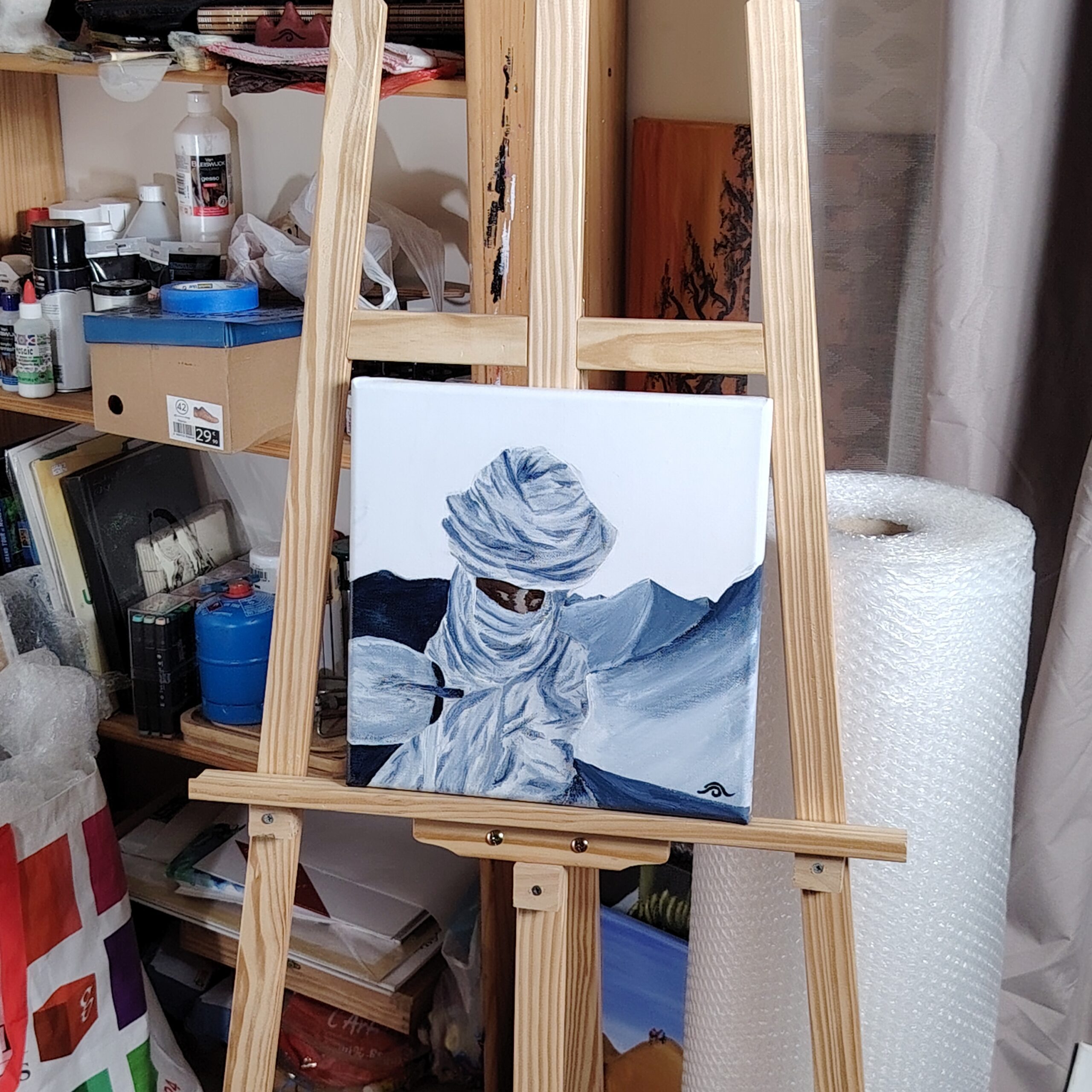 Réalisé au pinceau en août 2025 sur un châssis entoilé « I love Art » en pin de 1,7 cm d’épaisseur et une toile 100% lin agrafée sur l’arrière.