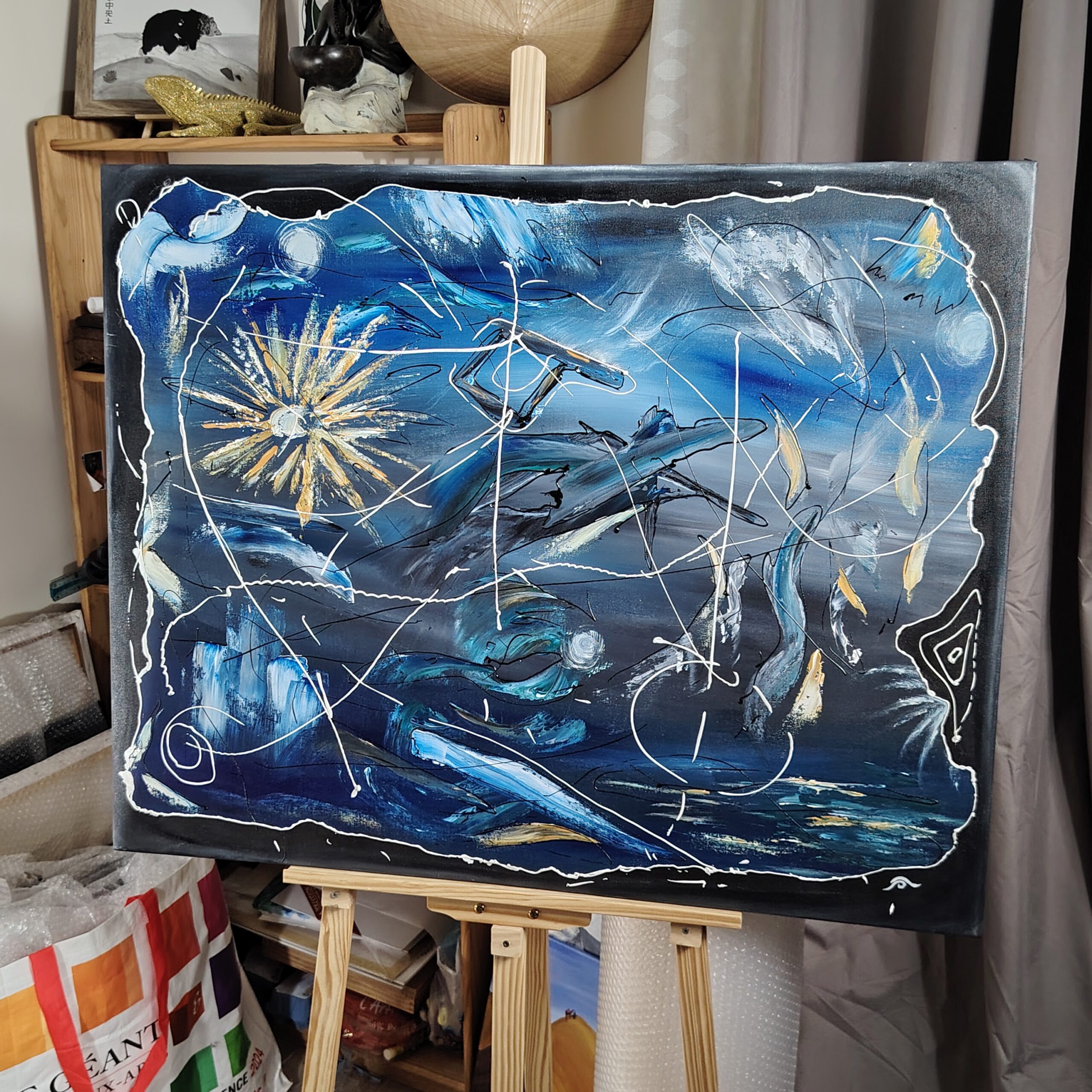 Ce magnifique tableau a été peint à la peinture acrylique extra-fine avec une finition au vernis brillant, sur un grand format rectangulaire (paysage) 100 x 80 cm.