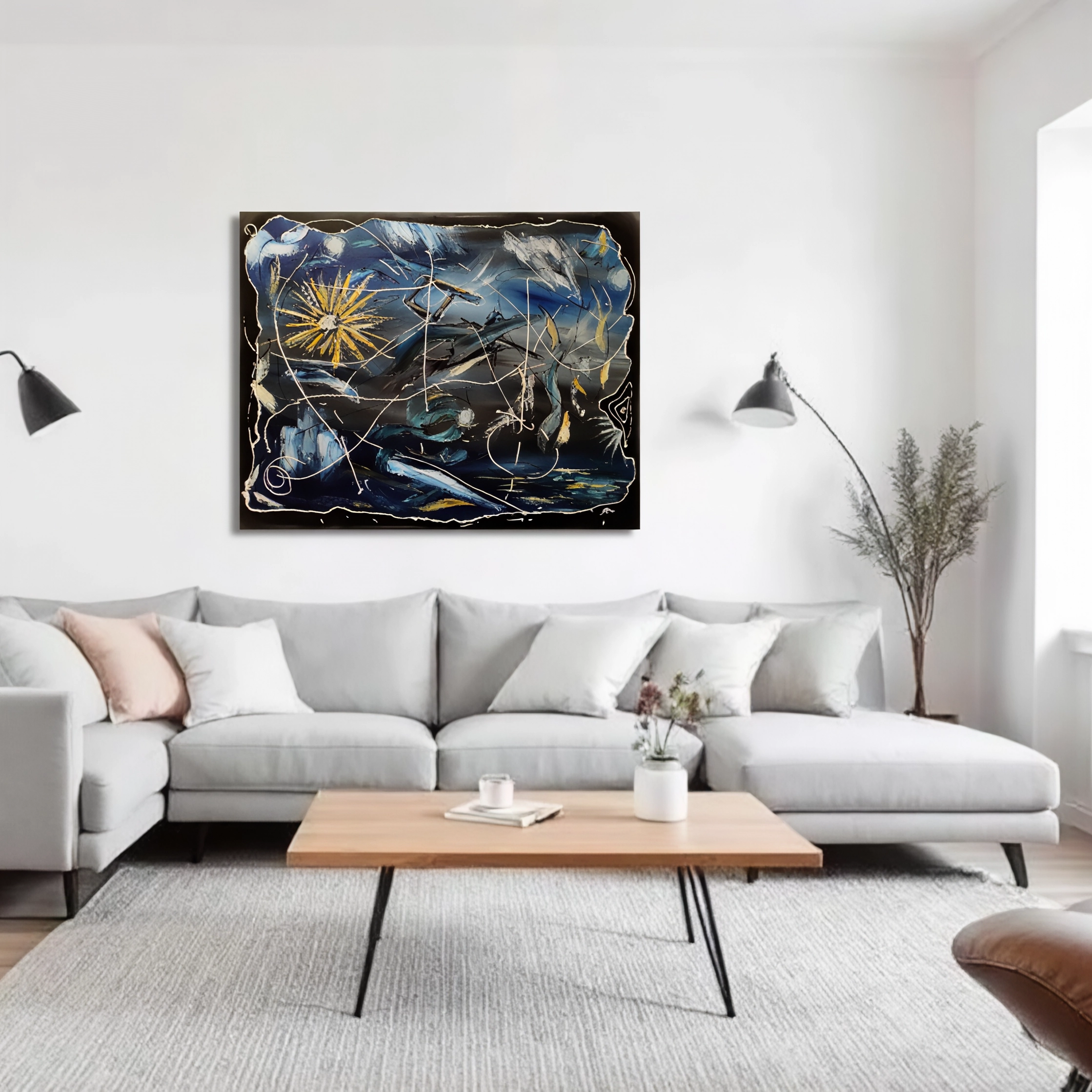 Ces peintures abstraites sont composées avec un contour peint en noir ou en blanc, ce qui ne vous impose pas un encadrement supplémentaire. Il est toutefois faisable d’y rajouter une caisse américaine pour un rendu élégant.