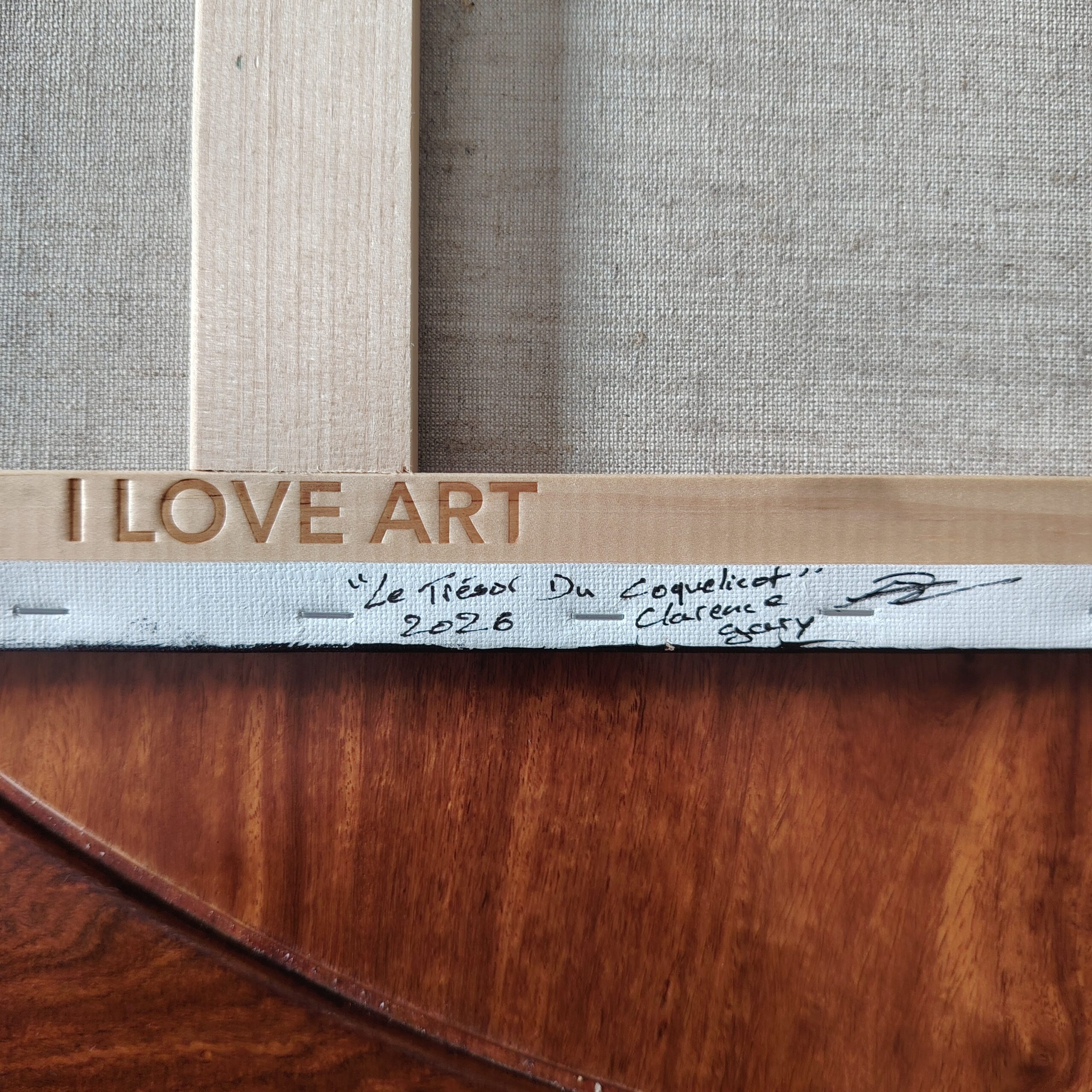 Réalisé au pinceau et au couteau en février 2026 sur un châssis entoilé « I love Art » de 1,7 cm d’épaisseur et une toile 100% lin à grain moyen 400g/m² agrafée sur l’arrière.