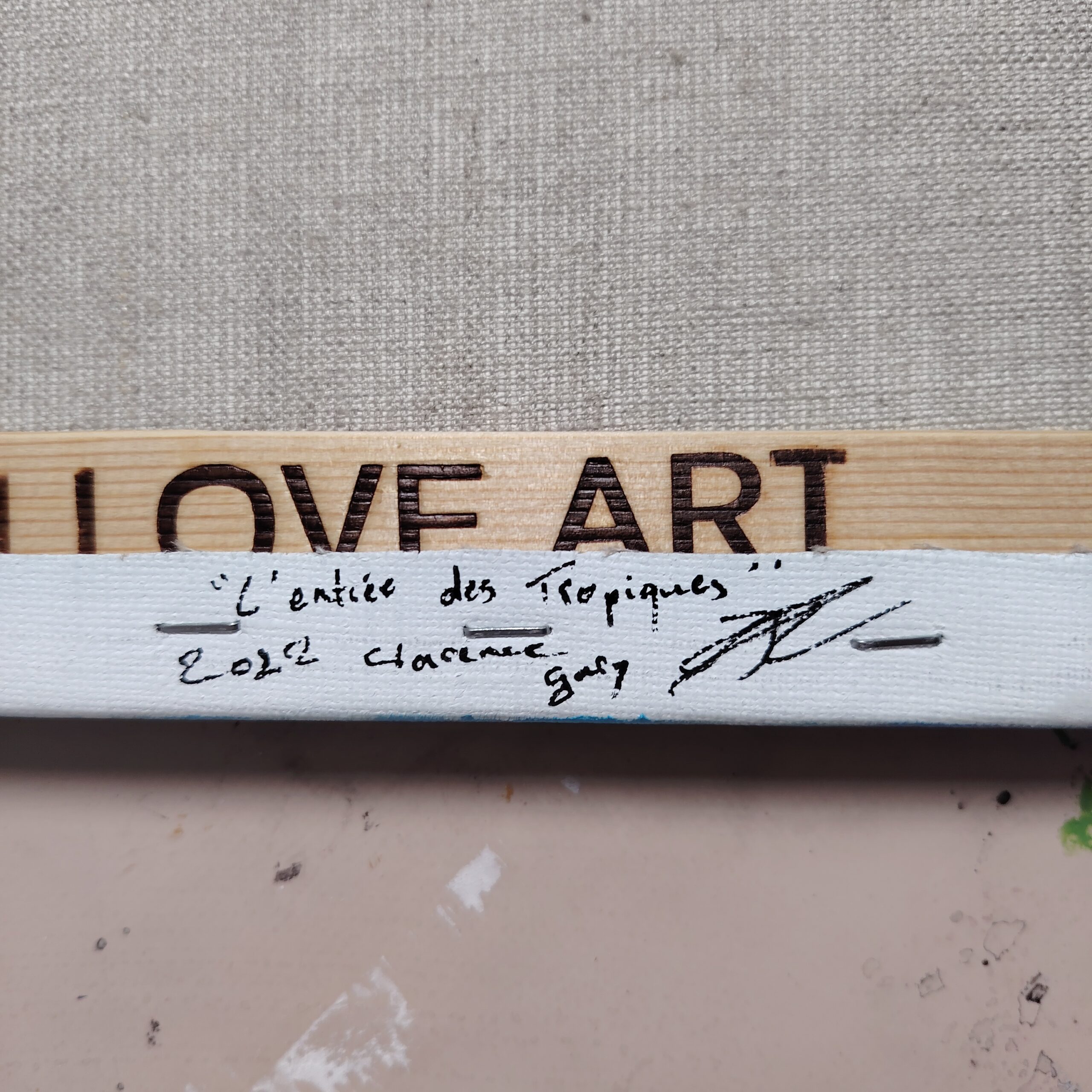 Réalisé au pinceau et au couteau en juin 2022 sur un châssis entoilé « I love Art » de 1,7 cm d’épaisseur et une toile 100% lin à grain moyen 400g/m² agrafée sur l’arrière.