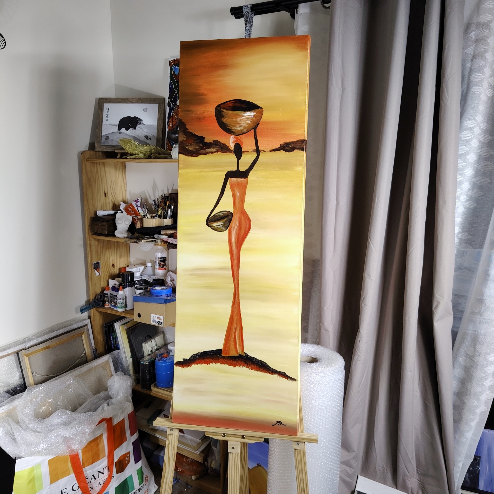 Réalisé au pinceau en août 2025 sur un châssis entoilé 3D de 3,8 cm d’épaisseur et une toile 100% coton agrafée sur l’arrière.